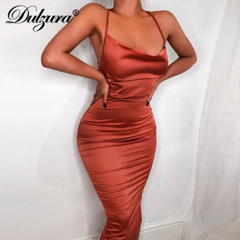 Neon Satin Lace Up Bodycon Midi Dress Elegant Party Outfits OG0014