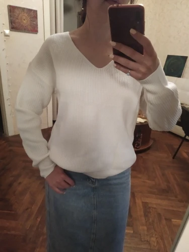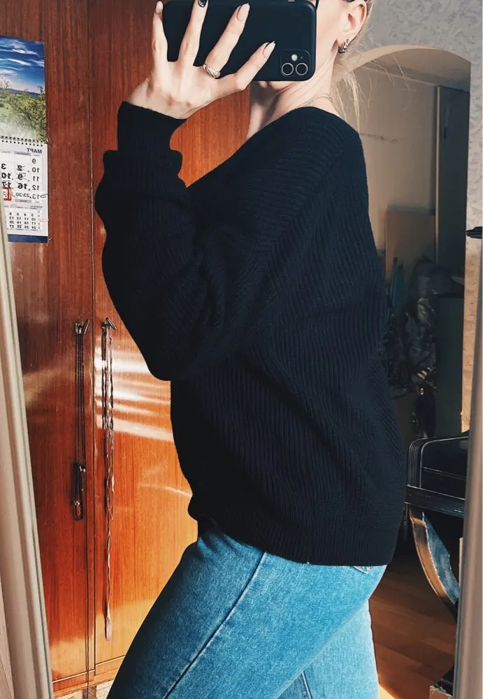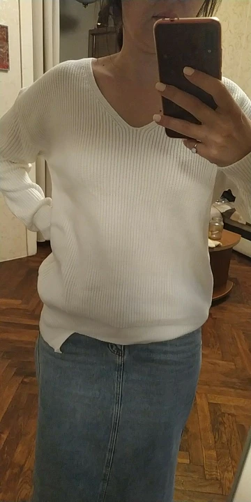 For size M, sometimes L, Russian 44-46 was not oversized at all, but an ordinary wide sweater. Perhaps due to the rubber band-assembly at the bottom such an impression, it does not hang and hangs, but simply neatly placed on the figure, for my size for a good effect should be much more voluminous. In the photo many can see it. A good effect will be on the thinner. And so on the look of a quality sweater, the seams are all neat, see how it behaves after washing.