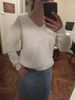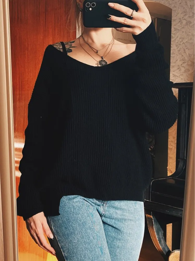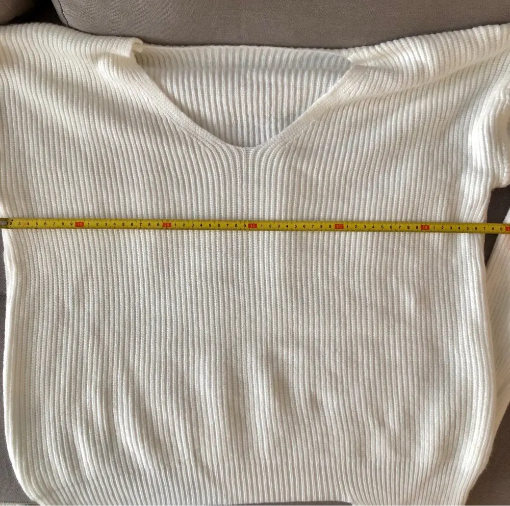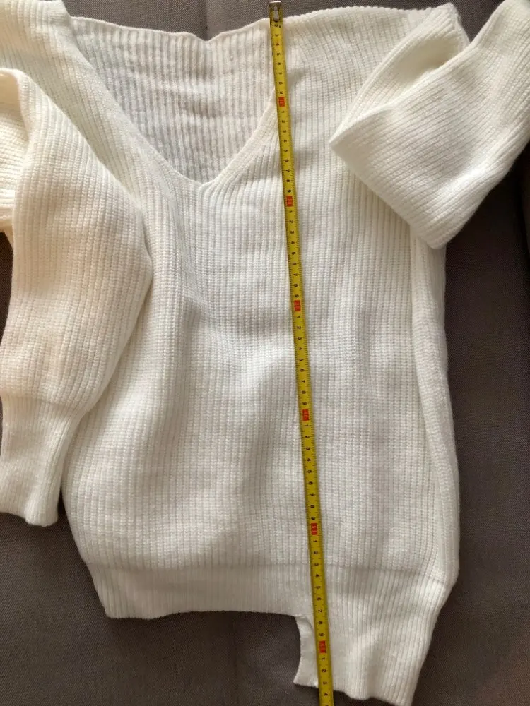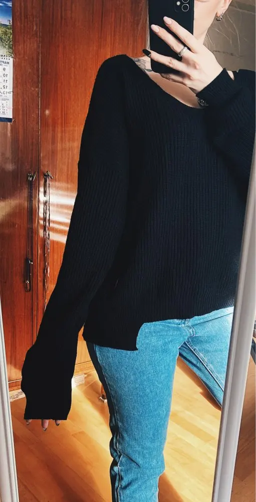 I really liked the sweater! Soft, nice to the body. On size 42-44 and height 163 sleeve length decent, size oversize. The neckline is quite deep, can be worn on one shoulder. The length of the sweater is visible in the photo) I recommend to buy, there was no smell, when washing does not fade. Thank you store!)