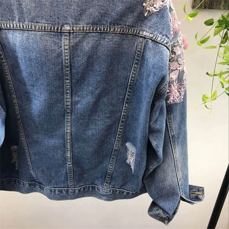2020 New Denim Jacket 3D Beading Pink Embroidery Jean Coat L0028