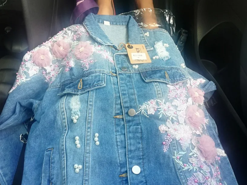 2020 New Denim Jacket 3D Beading Pink Embroidery Jean Coat L0028