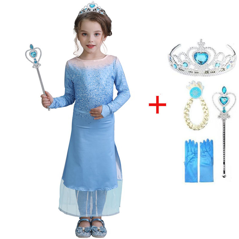 2020 New Girls Elsa Dress Set Princess Anna Elza Cosplay Costume Birthday Party Princess Dress For Kids Vestidos L0249