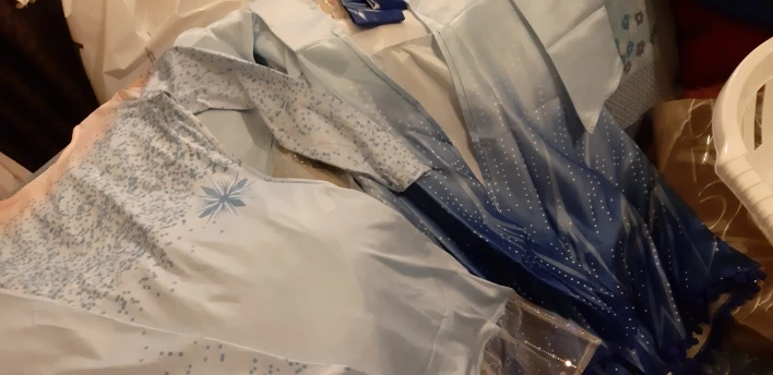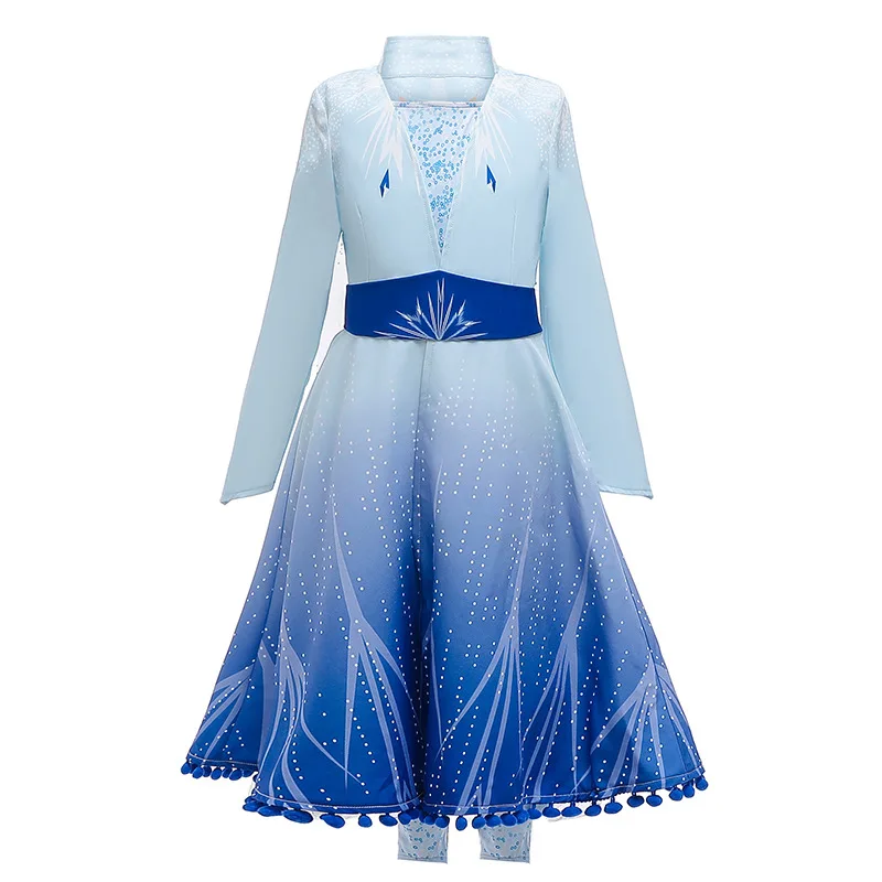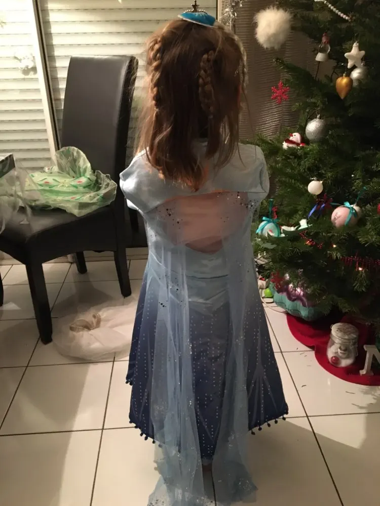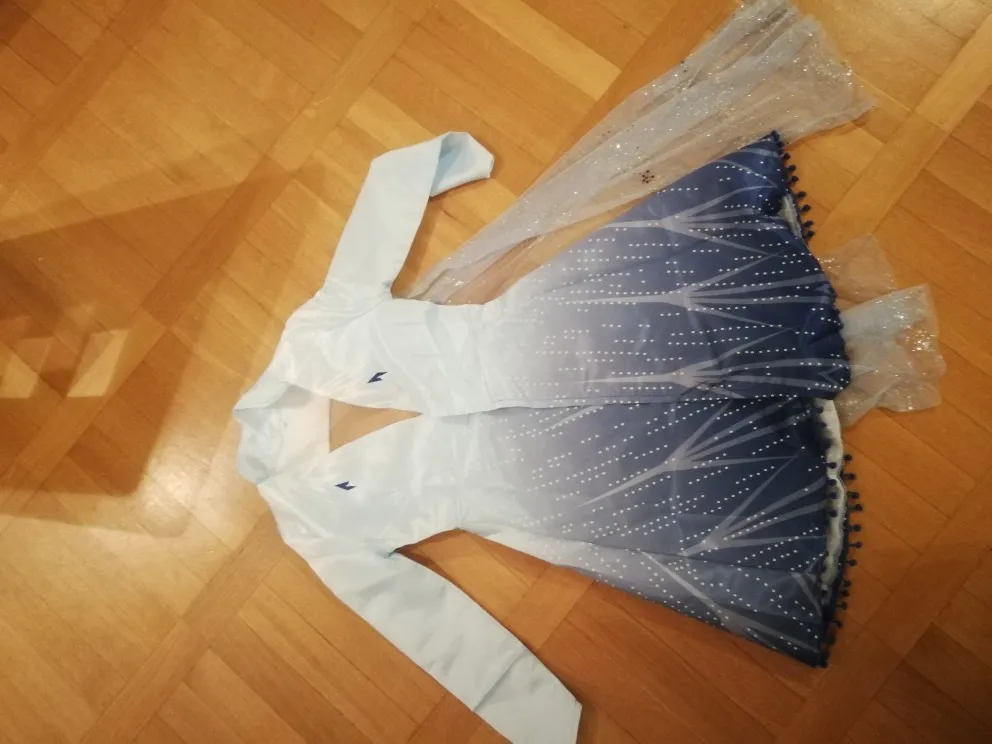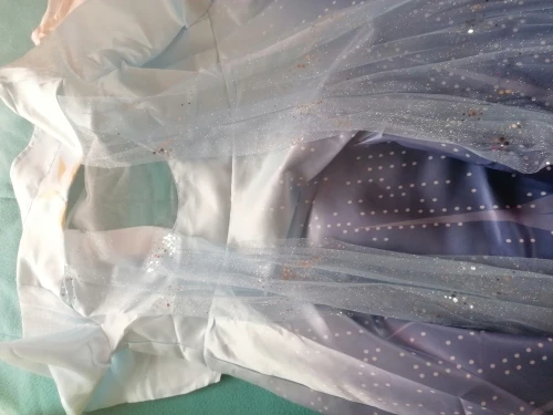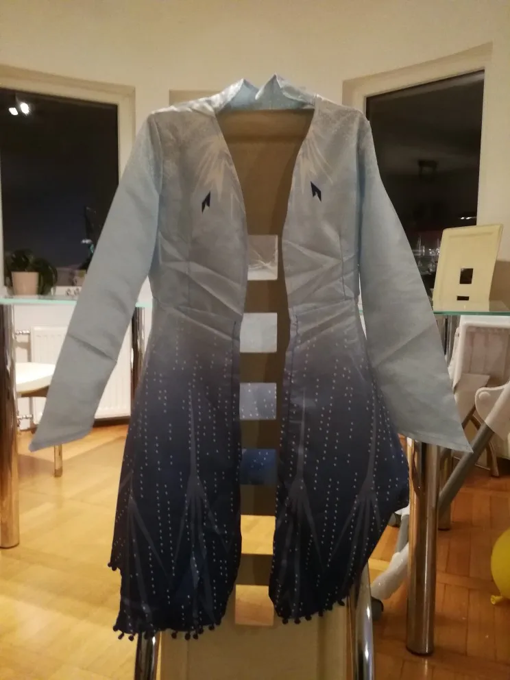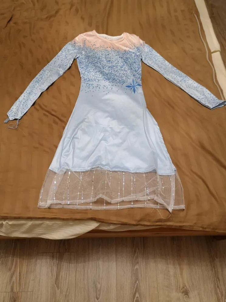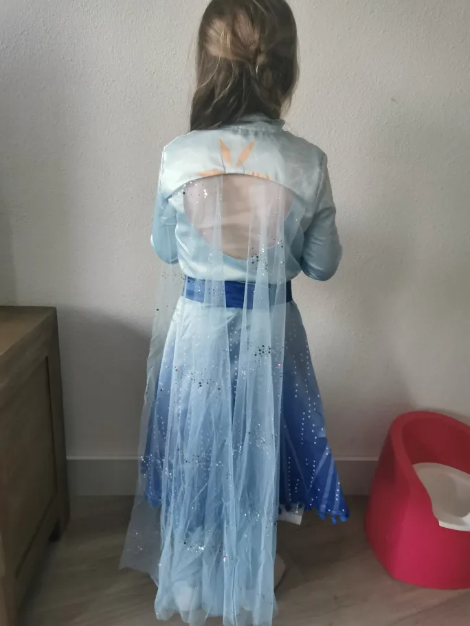 Cool costume) quality is not bad, the daughter is delighted) on the cloak is written size 110 for 4 years a little bit more but this is nonsense)) rolled up at the end of November but stuck straight on December 28 at the post office and received after the holidays) on the belt themselves already pasted and sewn rhinestones) Thank you costume good