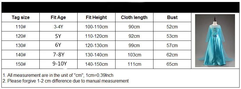 Super beautiful suit. Dochterlief has size 122/128 in Netherlands. Have size 6 bought for her and that sits perfectly. 20 January ordered and 6 February within so super fast.