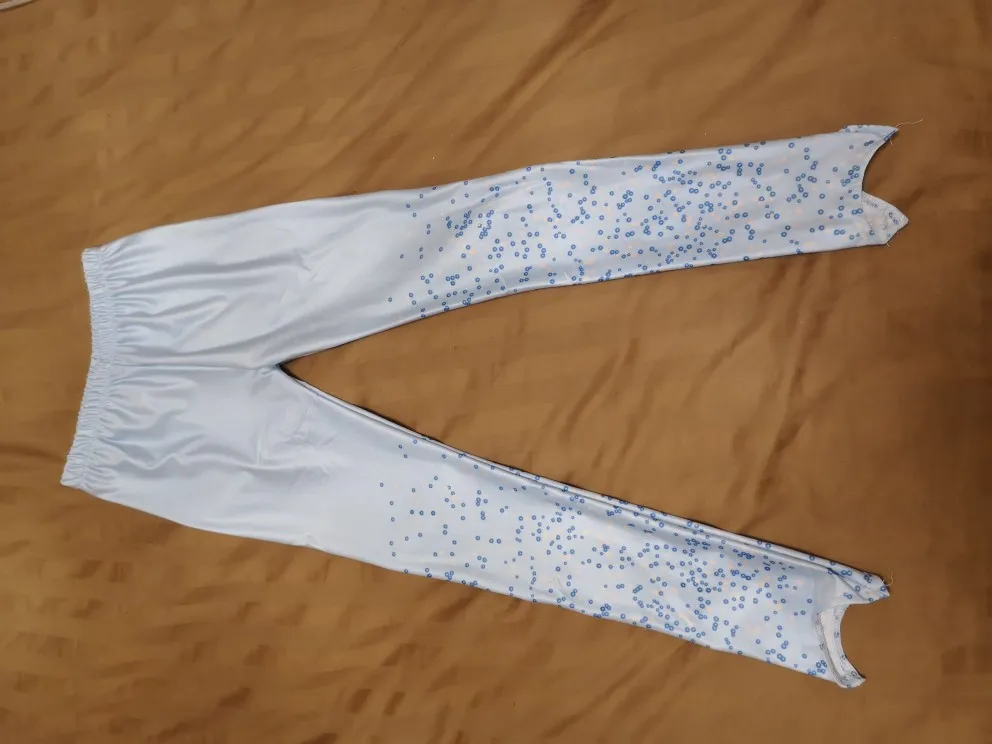 Beautiful, not glass. The blouse and pants are very soft. Stitched qualitatively. Met expectations. US 4,5, height 116, ordered size