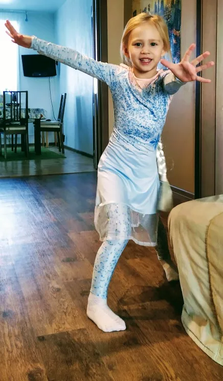 Dazzling! Arrived within 3 months because E, costume מושקעת. My daughter daughter 4.5 invited size 6 and suitable.