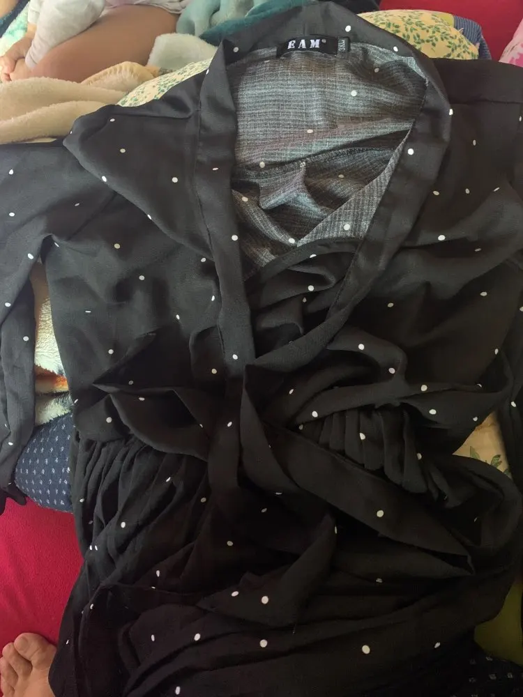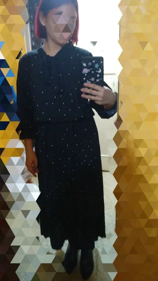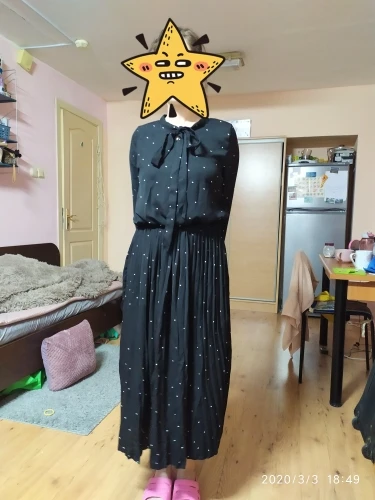 2020 New Women Dresses Round Neck Long Sleeve Solid Black Chiffon Dot Loose Big Size Dress L0248