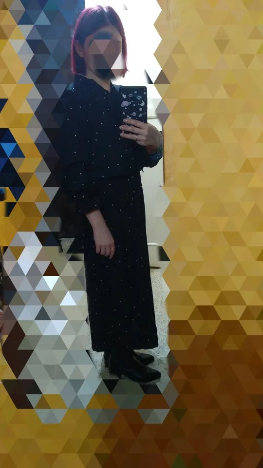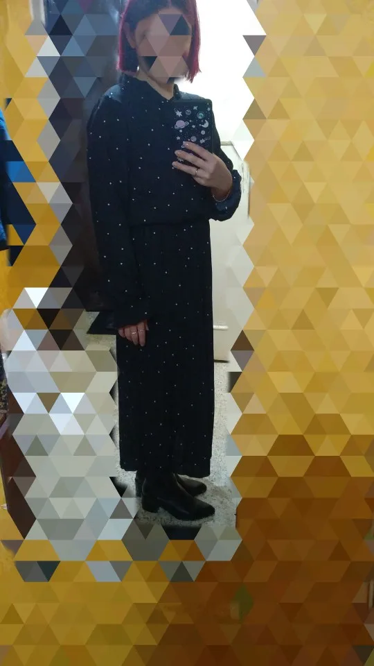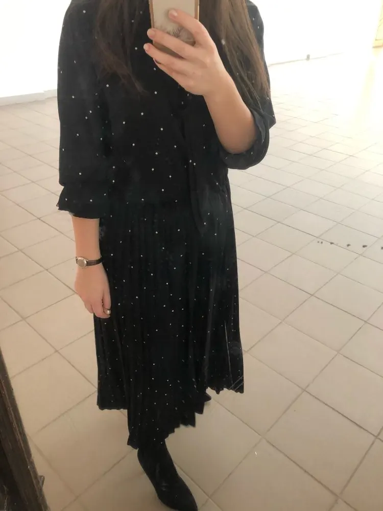Great dress. The truth magnetizes to tights) steamed with an iron. In the sleeves a little short, when you pull your hands, but not scary. Track not tracked