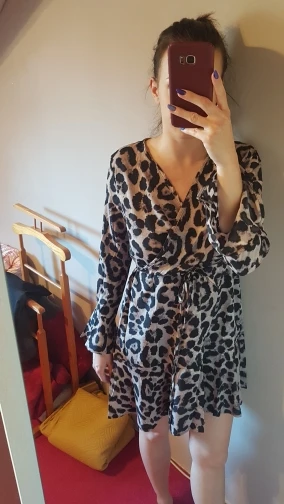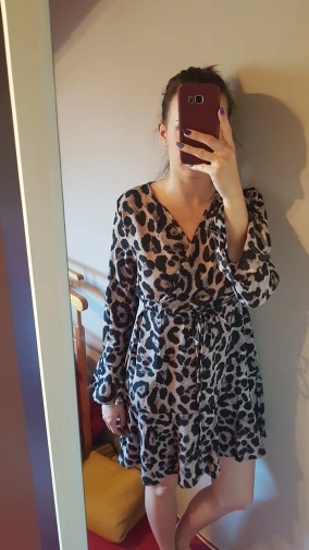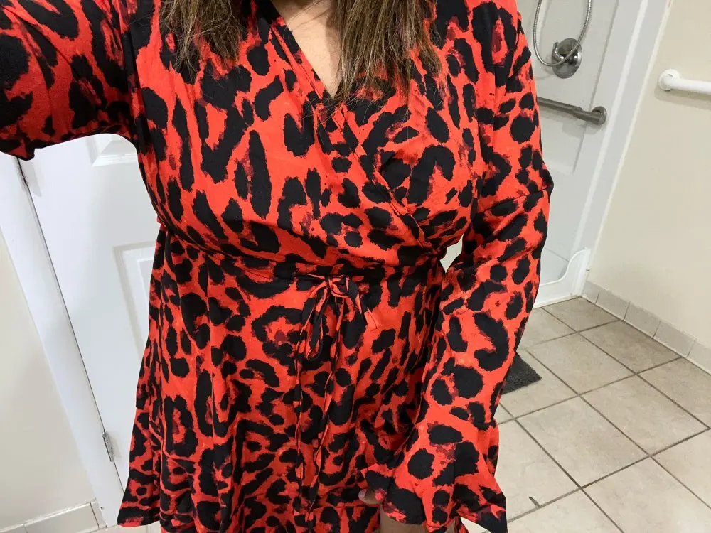 This dress is as fun as it looks. You can dress it up dress it down! It’s a nice print, flowy, can shake a tail feather in it too