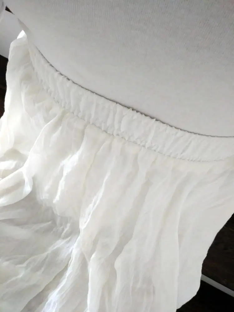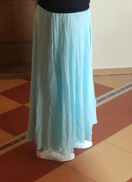 The skirt is a bomb. Soft, feminine, flowing, gentle, does not crumple (because crumpled in fact), it is washed together with ordinary underwear, at each step it moves very beautifully. I feel attractive in it. Full sun, bottom lining. Shines very slightly. I bought white. I really like what shines through. White underwear stands out, and body is not visible. Perhaps more saturated colors do not "glow". Equally good looks with sneakers and with shoes.