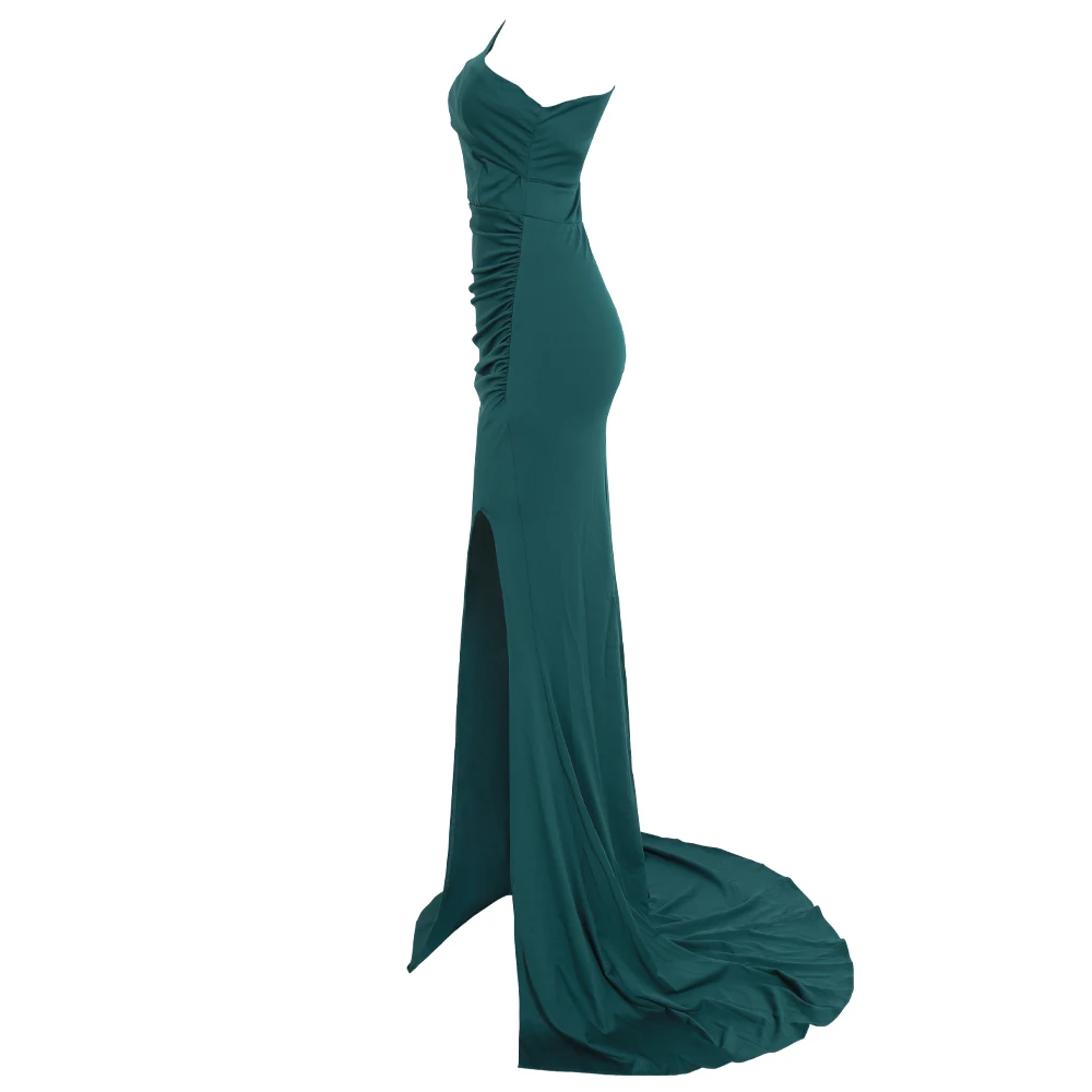 The dress is gorgeous! Unfortunately, with delivery were serious problems, the order was made on March 27, and only came on June 10 due to covid-19, so I put 3 stars on some points. In general, sewing even, no sticking threads, side zipper. My height is 176 cm + in the photo of 12 cm heels, the train is quite long, most likely I will shorten. :)