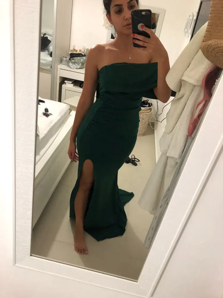 Dress is swietna!!!! Material rewelacja and this color :) I 190cm tall and dress still Sie ciagnie for MNA. For codzien stretcher size S and such Tez zamowilam this dresses and fits perfectly. Highly recommend. Zdjecia unfortunately not oddaja color dresses.