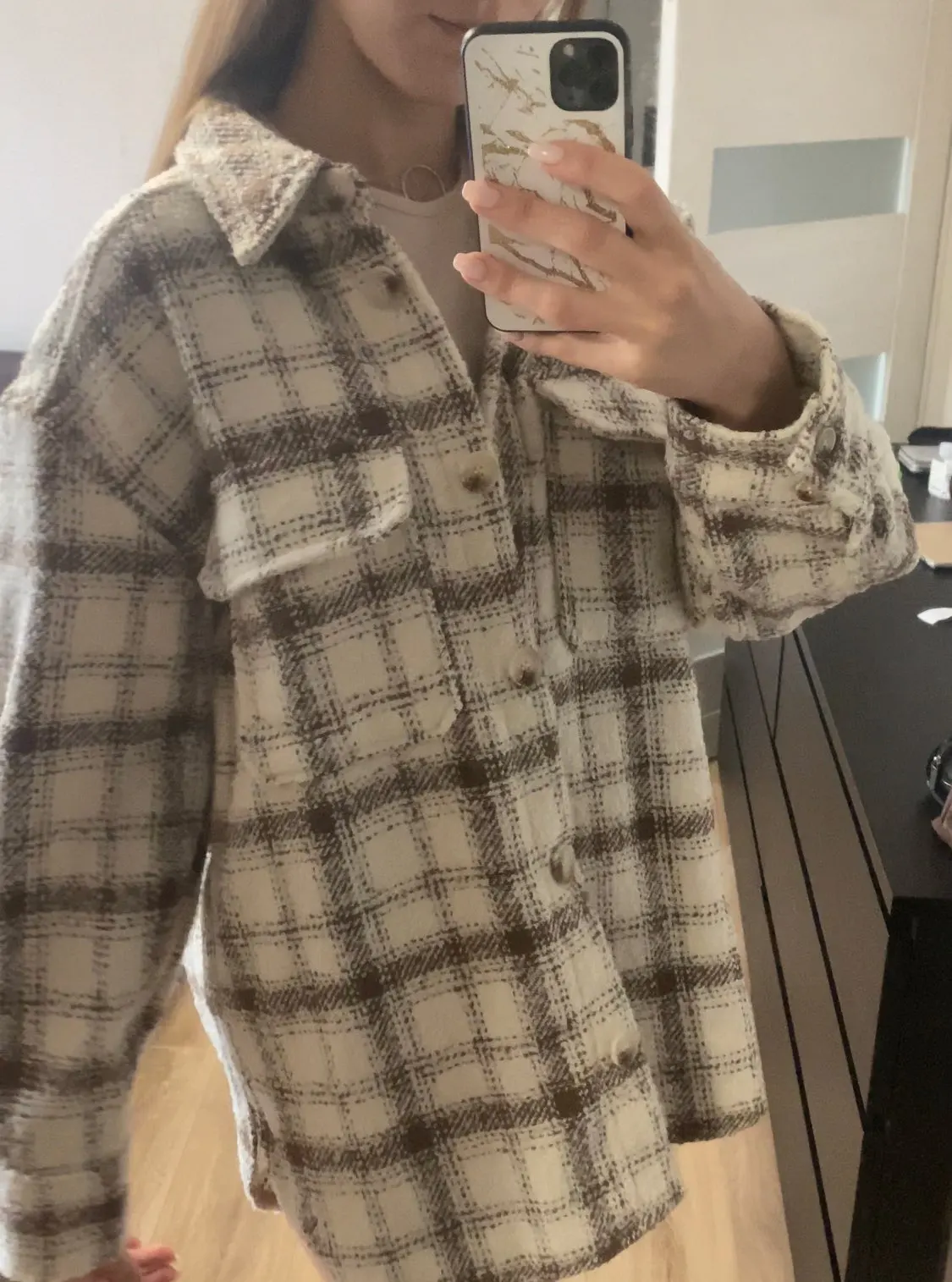Looks very stylish)) warm and cozy shirt)) special thanks to the store! I ordered first the size of L (Russian 44-46), I wanted the maximum overseas, but then I realized that it would be too much for me)) written in a chat to replace they answered immediately-that everything is OK)) the result sent the right size M! I advise the seller))