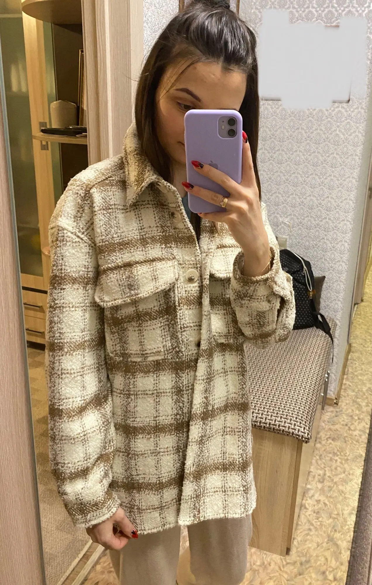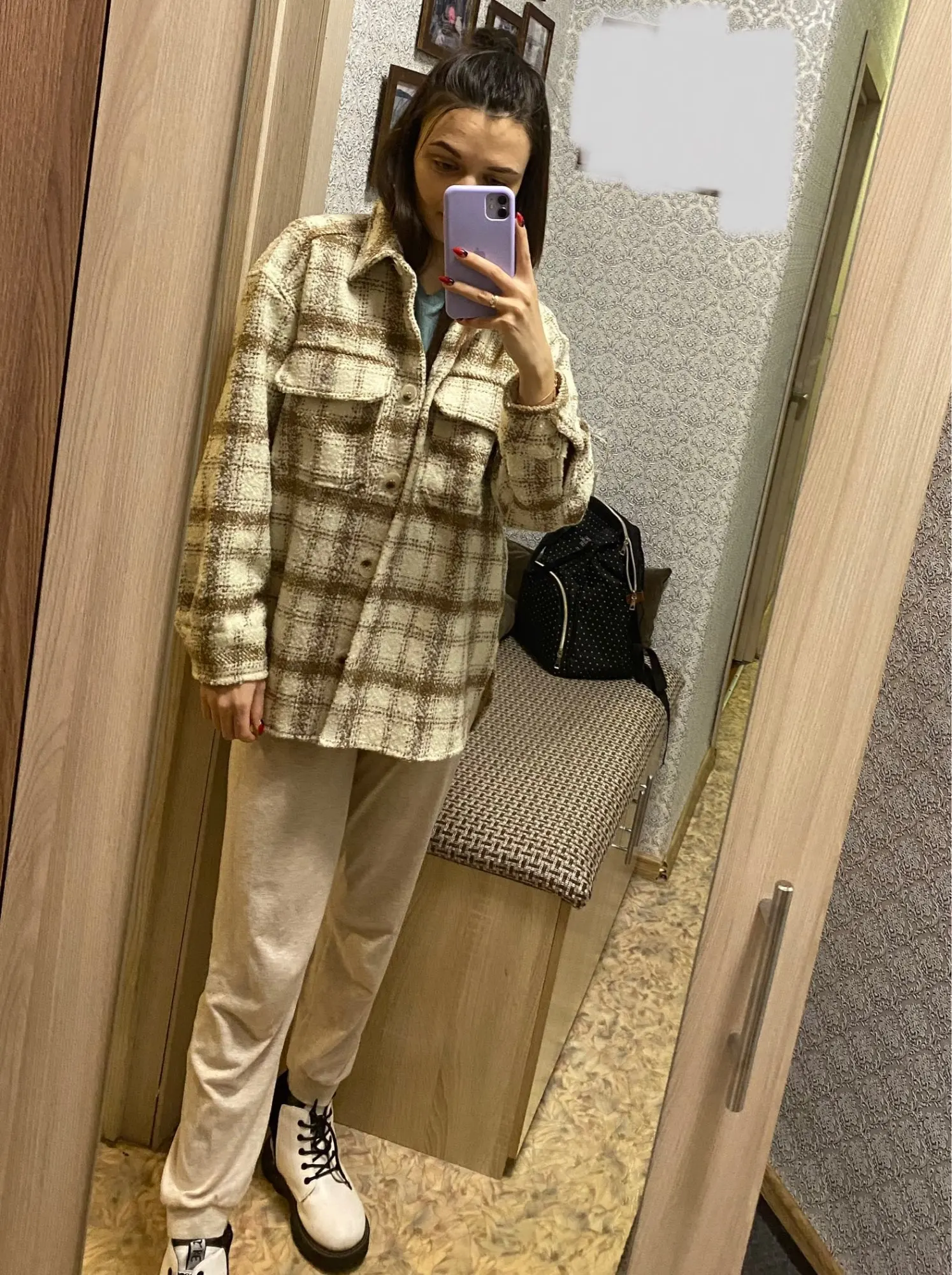 Хорошая рубашка, можно использовать как пальто, чувствуется шерсть, размер s соответсвует российскому, посадка оверсайз, подробнее видео обзор есть в моем инстаграм @lena_lifeday2