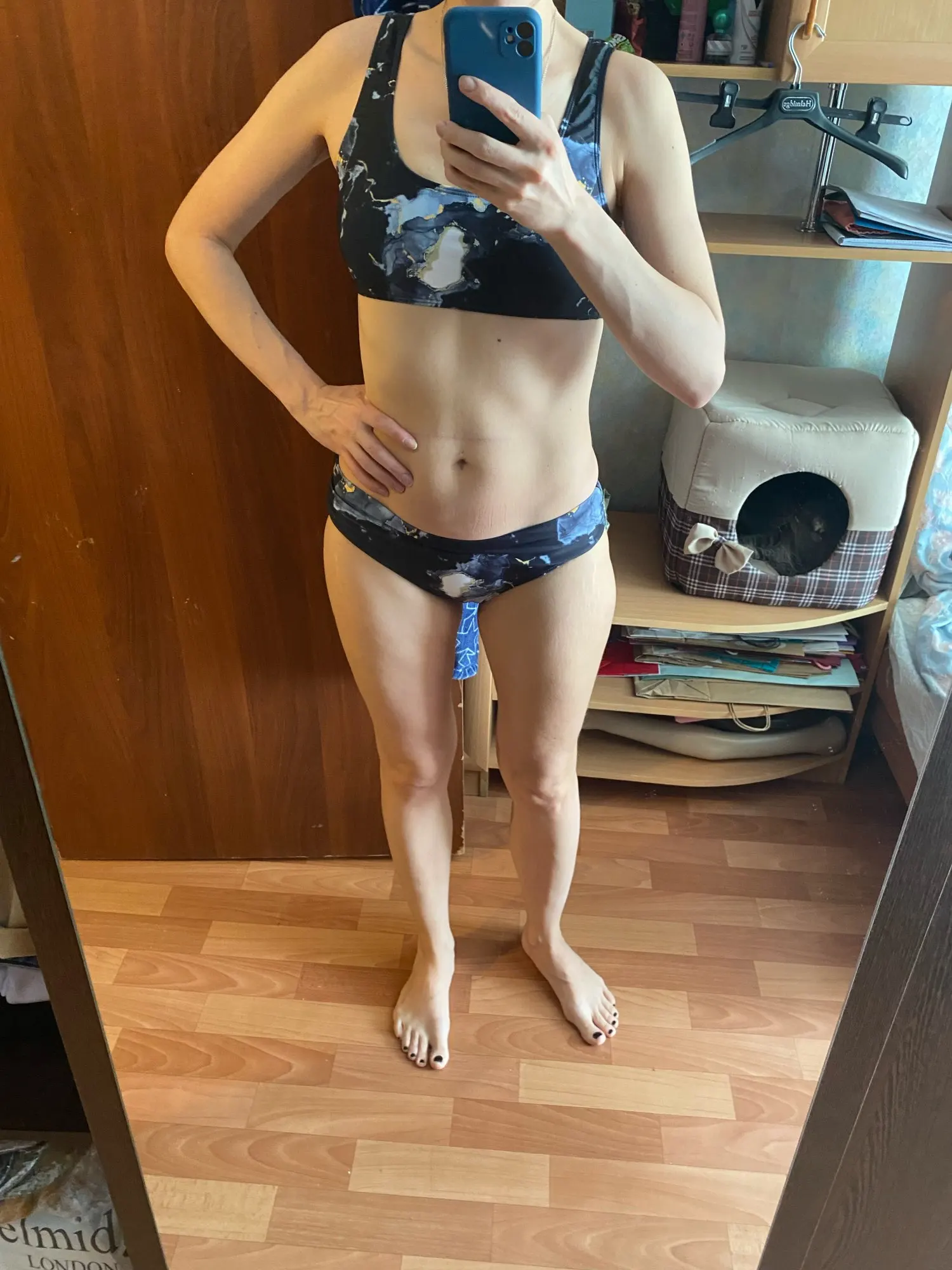 Very fast delivery to Kiev by new mail 10 days. My parameters plus minus 85-62-85, took the size S, was afraid that it would be large. In the end: The top sat back to back, and the melting is huge. Good that I did not order m! I pull the melting well to the waist, while they hold, but gather folds everywhere ((it looks shorter norms. On a girl with a small breast and more hips will sit perfectly. In principle, I'm happy, I'll wear a swimsuit, it's worth my money but no more. With the store did not communicate
