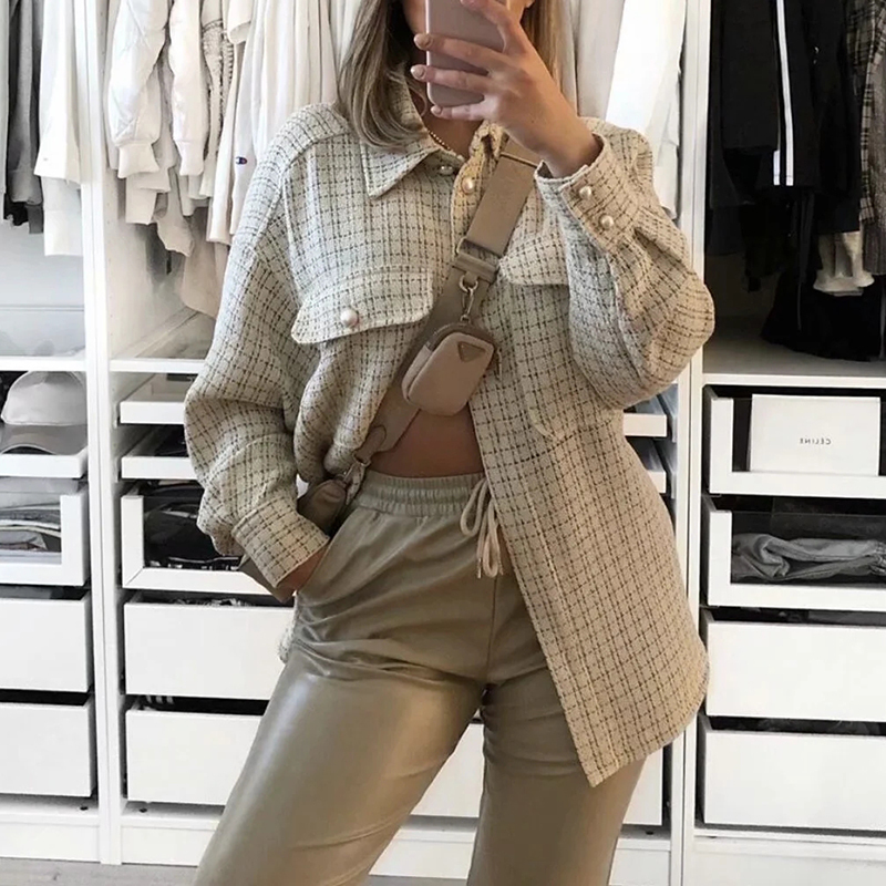 Women Pearl Button Shirts 2021 Spring Fashion Ladies Oversize Thick Shirt Streetwear Female Outfits Cute Girls Chic Shirts