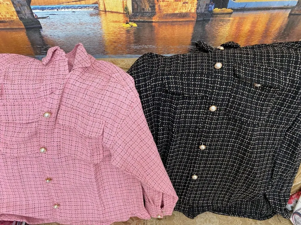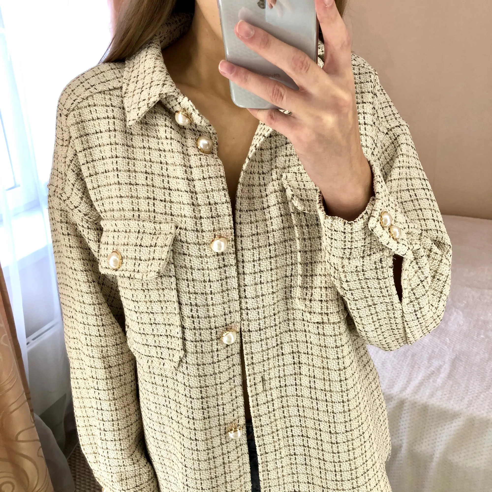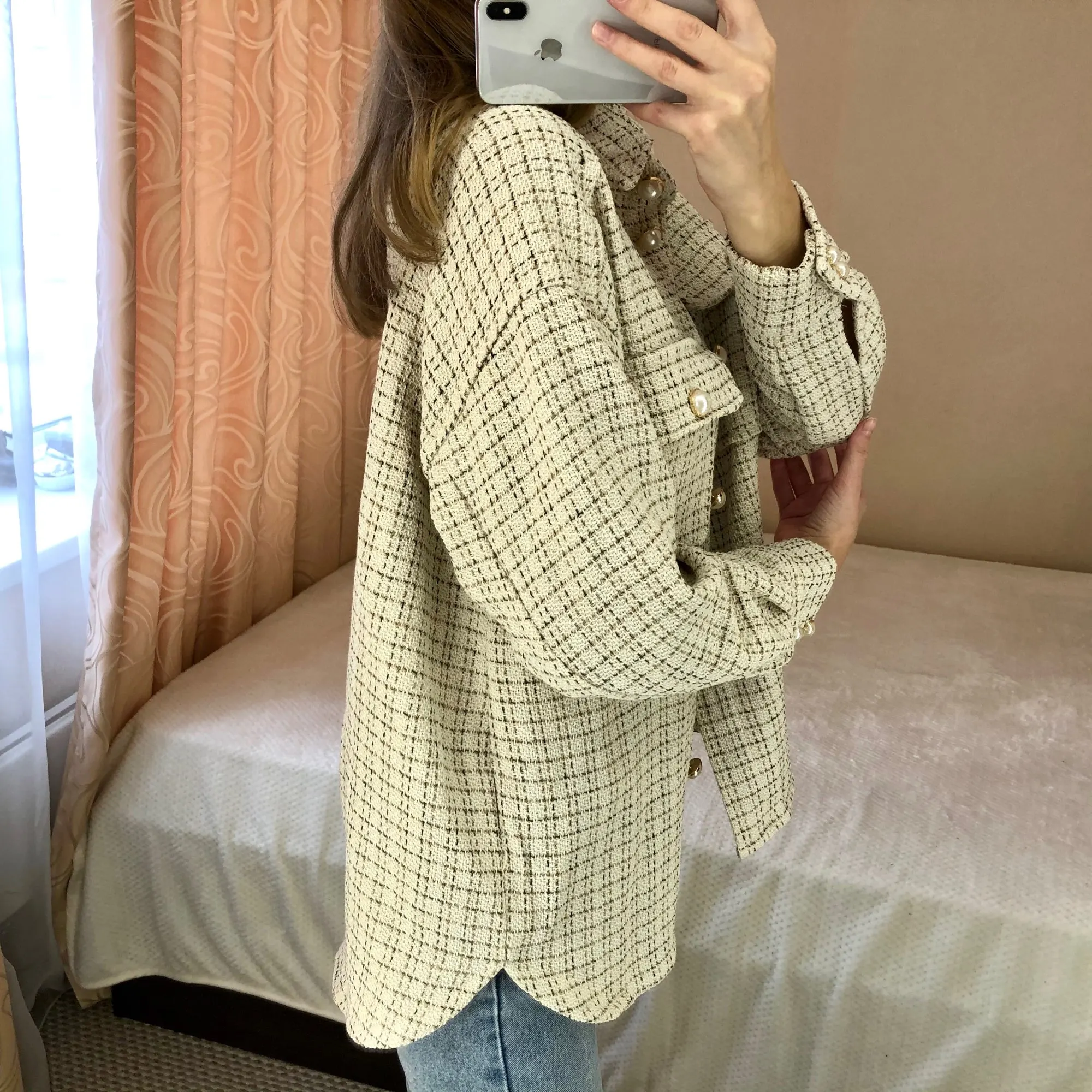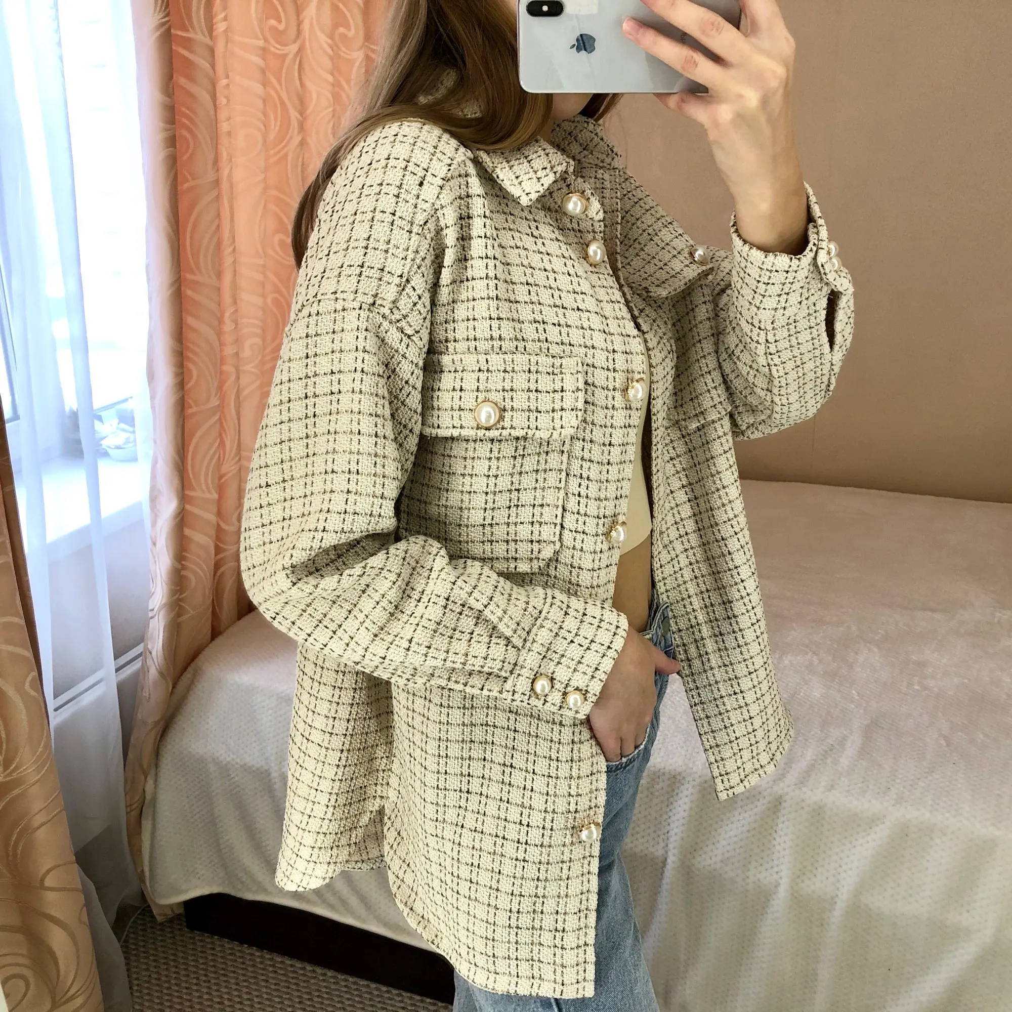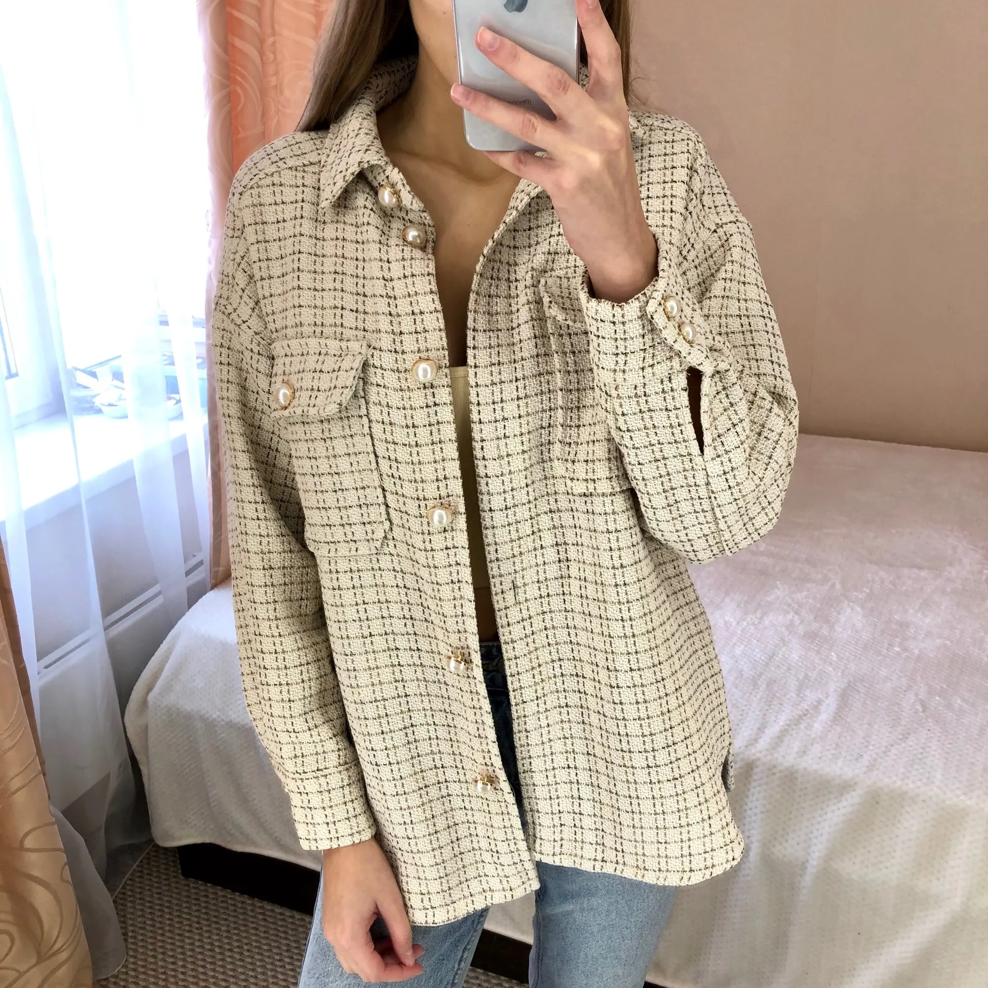Women Pearl Button Shirts 2021 Spring Fashion Ladies Oversize Thick Shirt Streetwear Female Outfits Cute Girls Chic Shirts