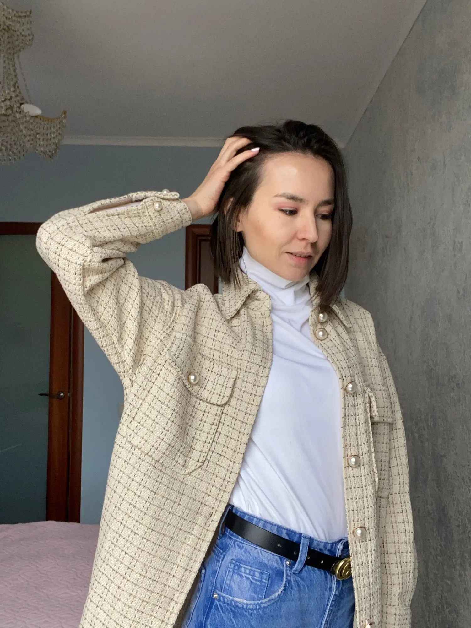 Cool shirt!!! I liked it very much!!! Came without defects, without an unpleasant smell, the only thread stuck out, but they are easy to cut. The shirt is pretty heavy. Looks cool, a small oversize. The buttons are very beautiful. In general, I recommend to buy.