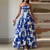 2025 Elegant Strapless Floral Party Dress Off Shoulder Pleated Slim Fit Long Evening Gown for Women OUT1028