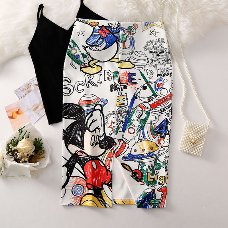 Womens Pencil skirt Cartoon Mouse Print High Waist Slim Skirts L0027