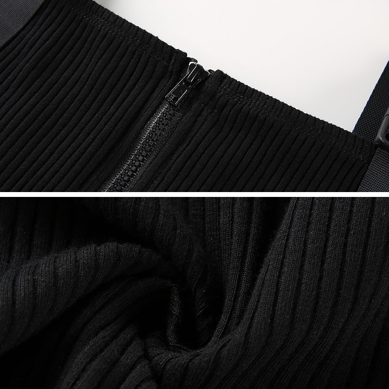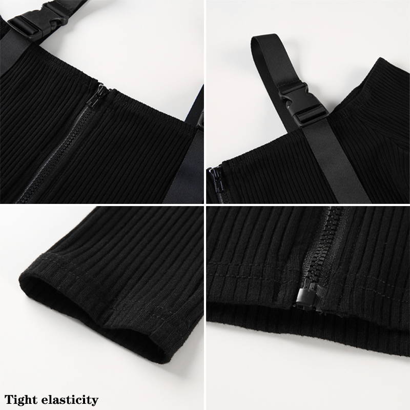 Women Long Sleeve T-shirt Crop Top 2020 Korean Fashion Style With Buckle Knitted Black Short Street Wear L0119