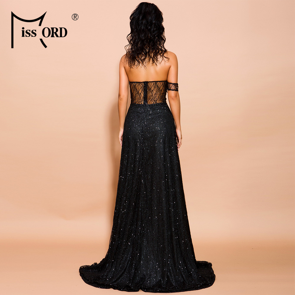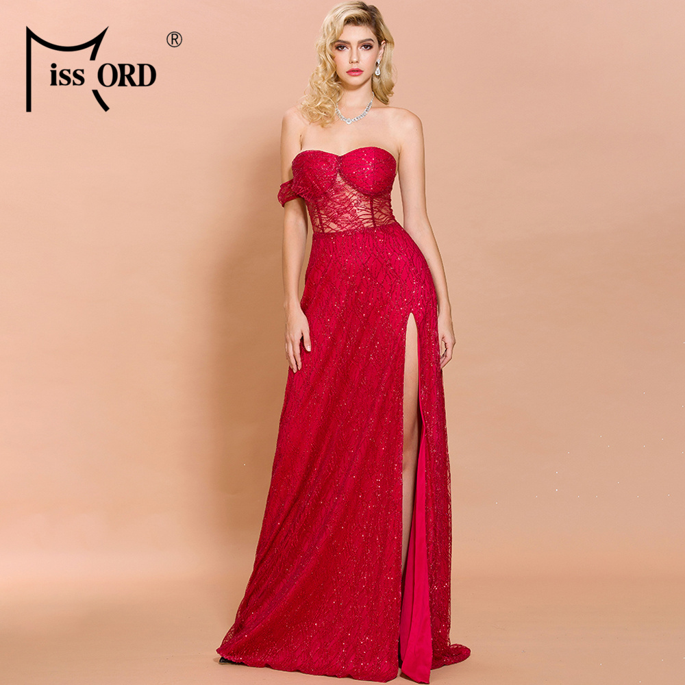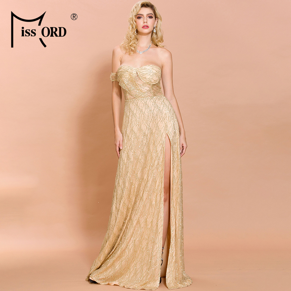 2020 Women Elegant Maxi Dress Sexy Off Shoulder Glitter High Split Backless