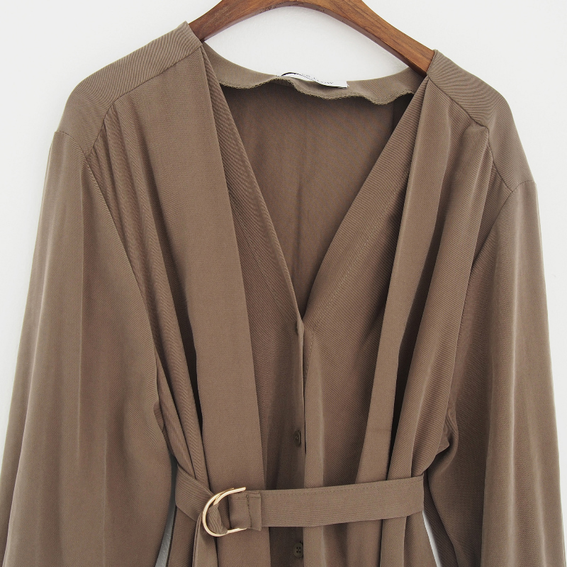I liked the dress. The color is beautiful beige pink, like powder. The fabric is velvet, soft, pleasant to the body. Without a belt as really as a robe, but with different belts looks different. I have parameters 85-70-100, height 165, looks like an oversize, but the sleeves are long, I'll try to change the buttons on the cuffs or remove in the shoulders. The store put a hair band as a gift. I'm happy with the purchase, I recommend.