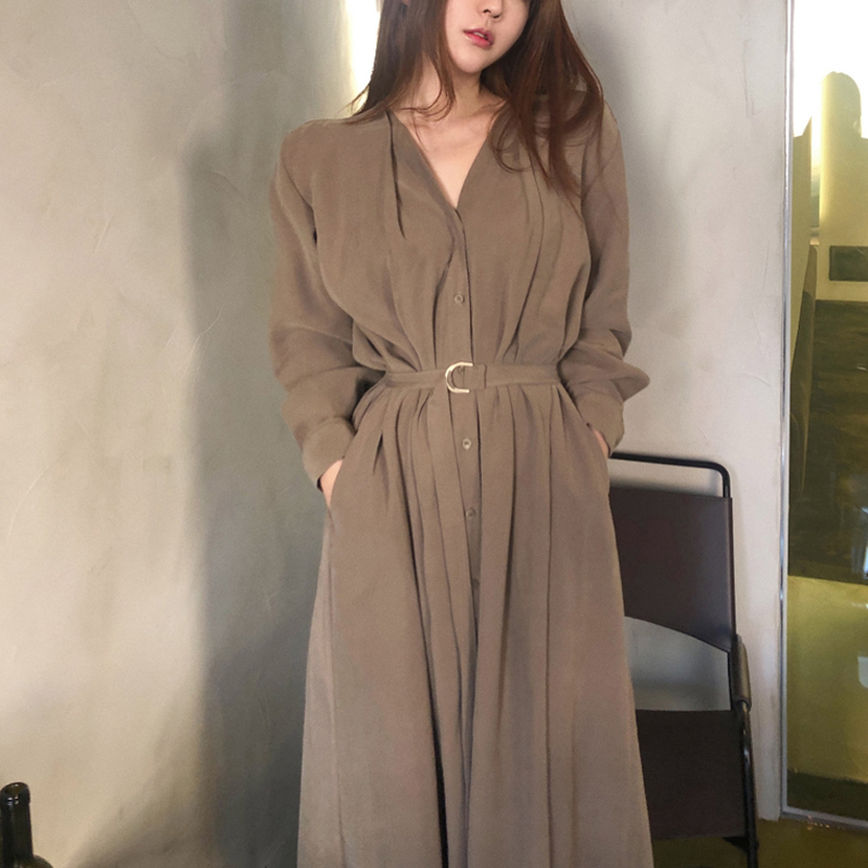2020 Spring Elegant Long Sleeve Belted Women Dress