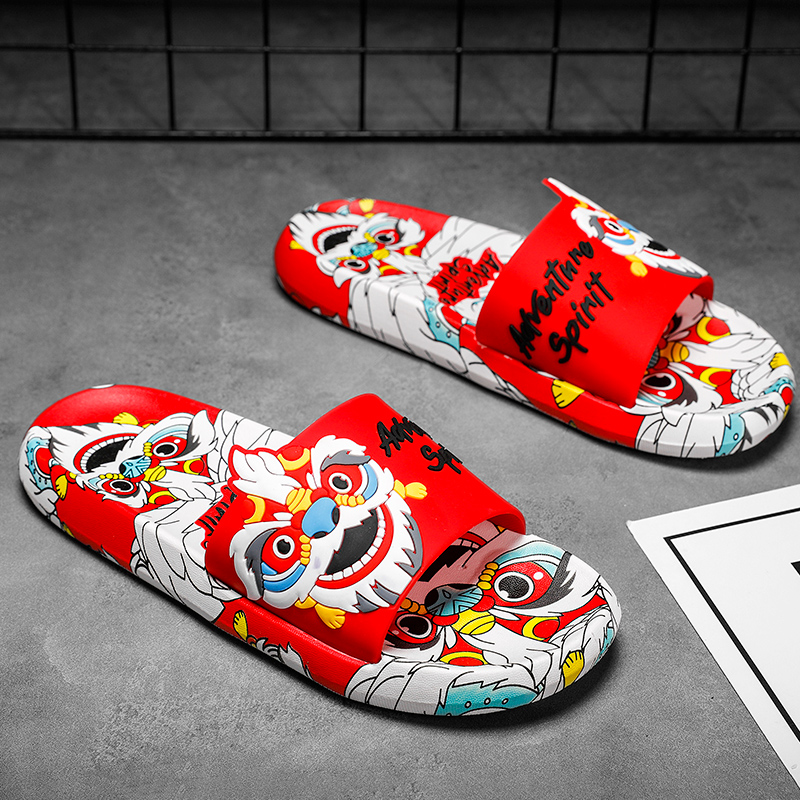 Adventure Spirit Dragon Print Slides Slippers Flip Flops Sandals Colorful Streetwear Slip On OUT1084