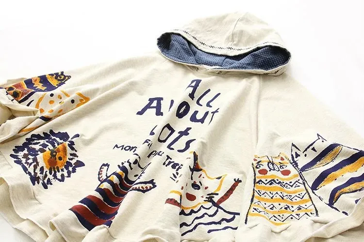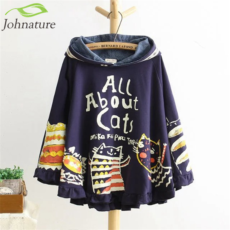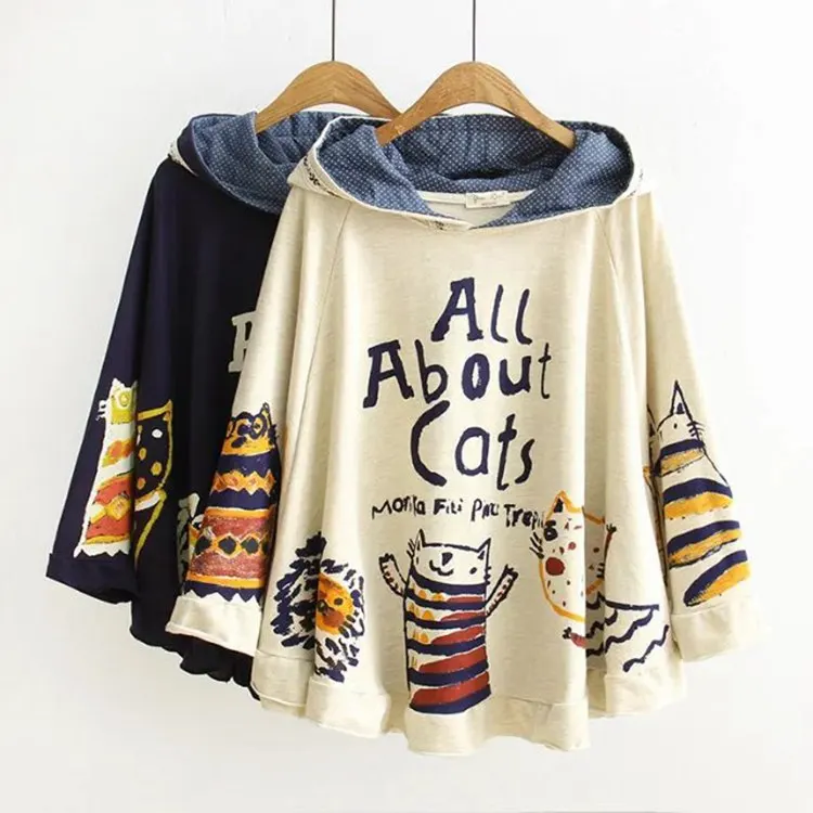 All About Cats Print New Autumn And Winter Hoodies Hooded Loose Kawaii Japan Style L0139