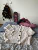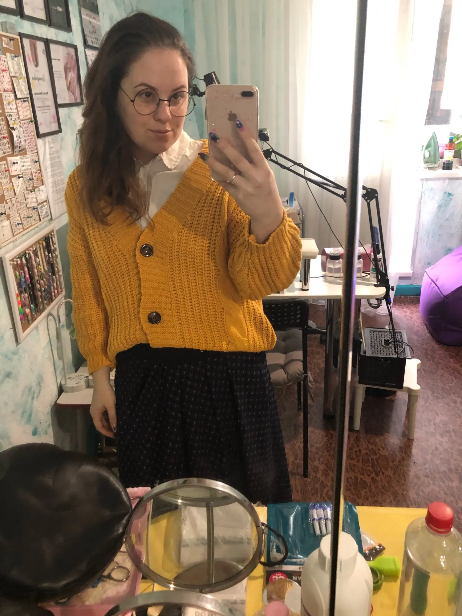 Cardigan is gorgeous. I'm wearing a clear oversize. The sleeves are not short, as is the length as a whole. Lavender color. Well, there were threads, so it's bullshit. It's easy to fix everything. As a gift put a rubber band for hair and a coupon.