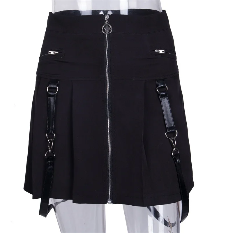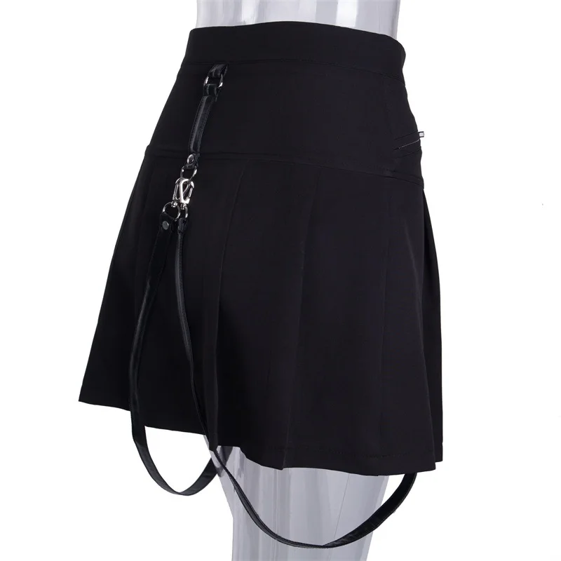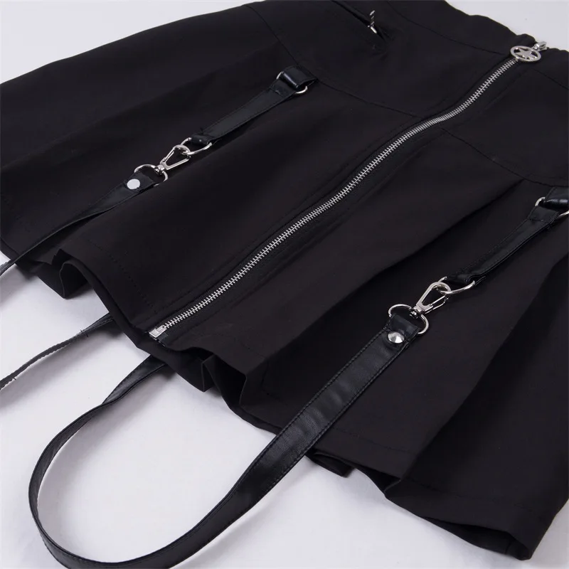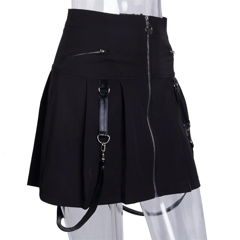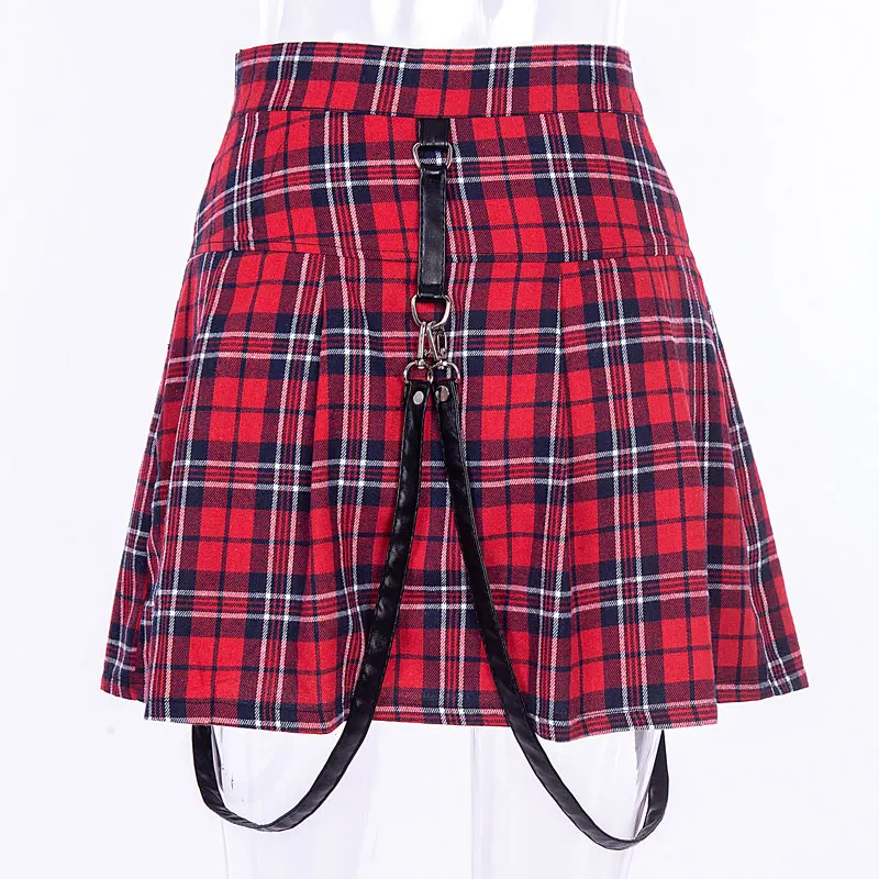 Autumn Zipper Pleated Plaid School Mini Skirt Strap