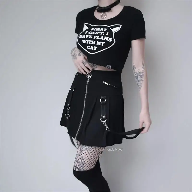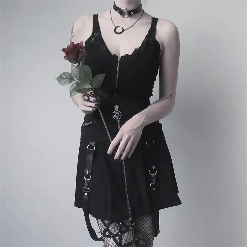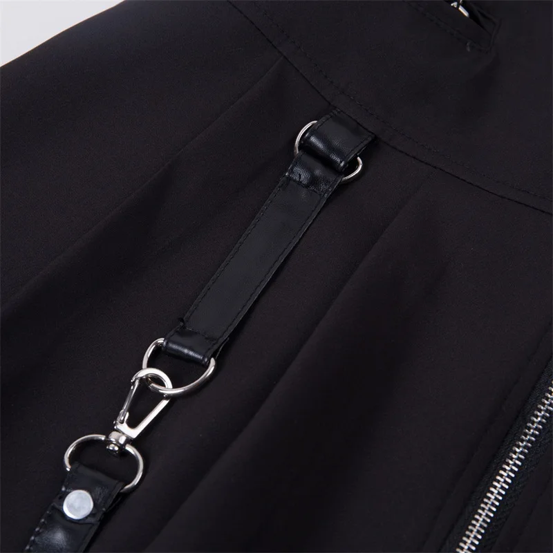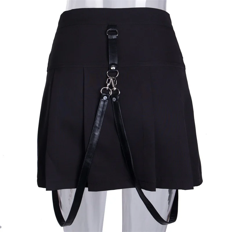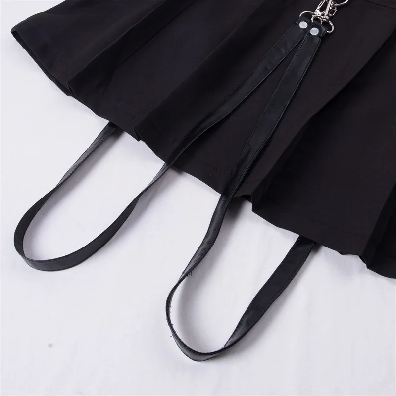 Autumn Zipper Pleated Plaid School Mini Skirt Strap