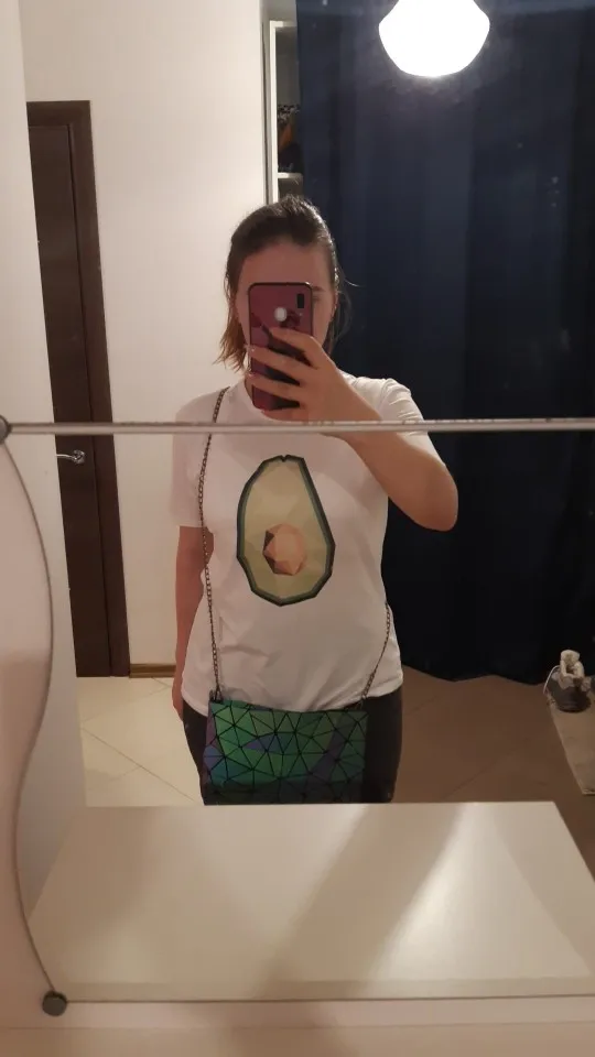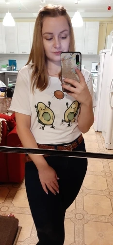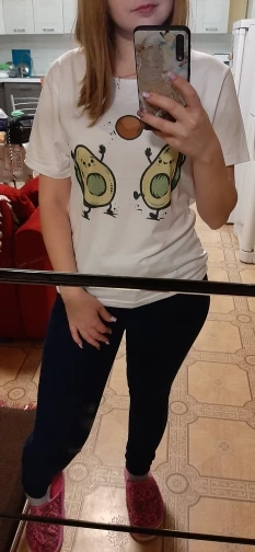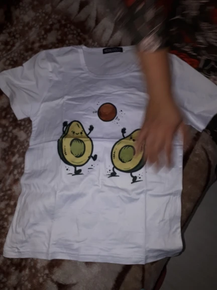 T-shirt is soft, odorless. Pattern printed, not sticker. Size took M, freely, it was necessary to take s