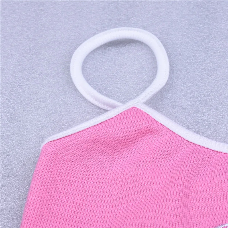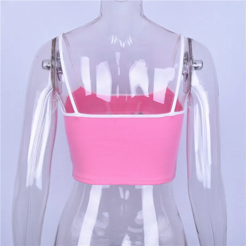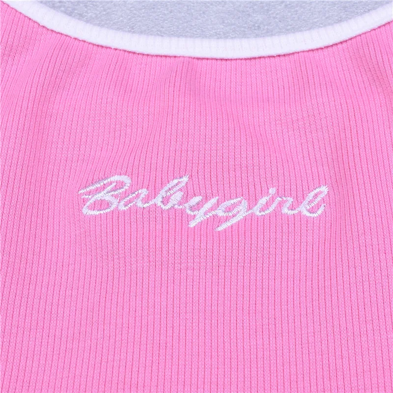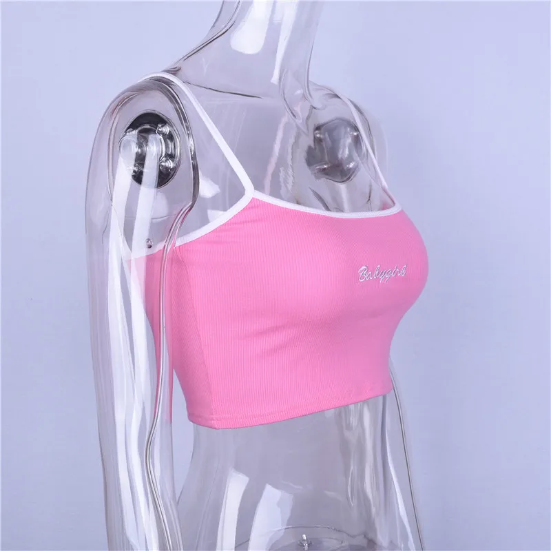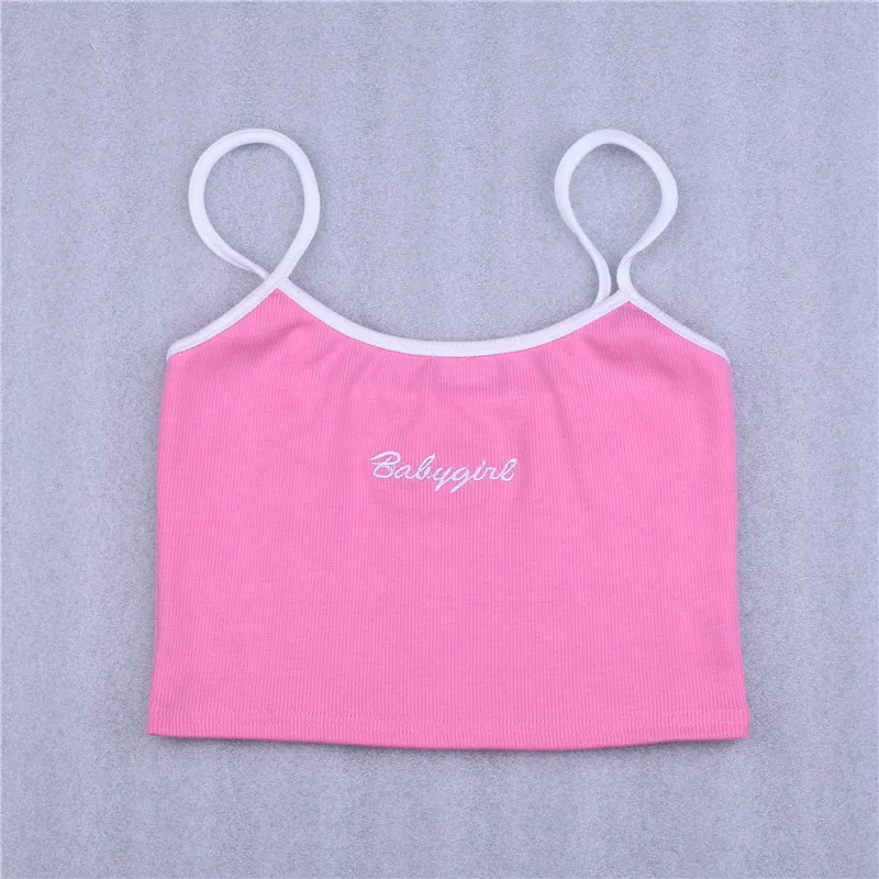 Baby Girl Letters Embroidery Spaghetti Straps Patchwork Crop Tops L0224
