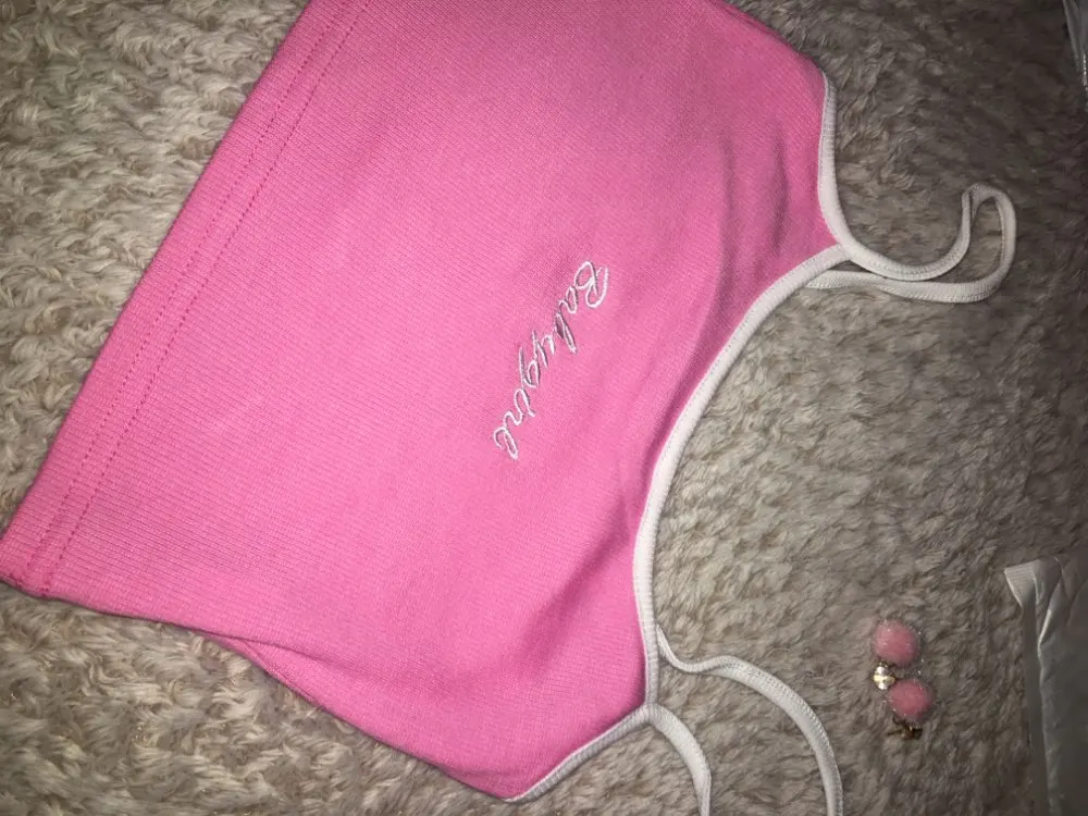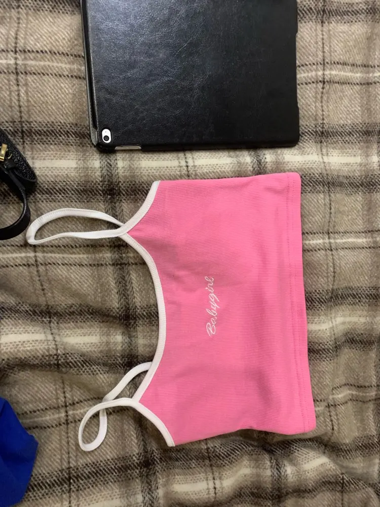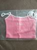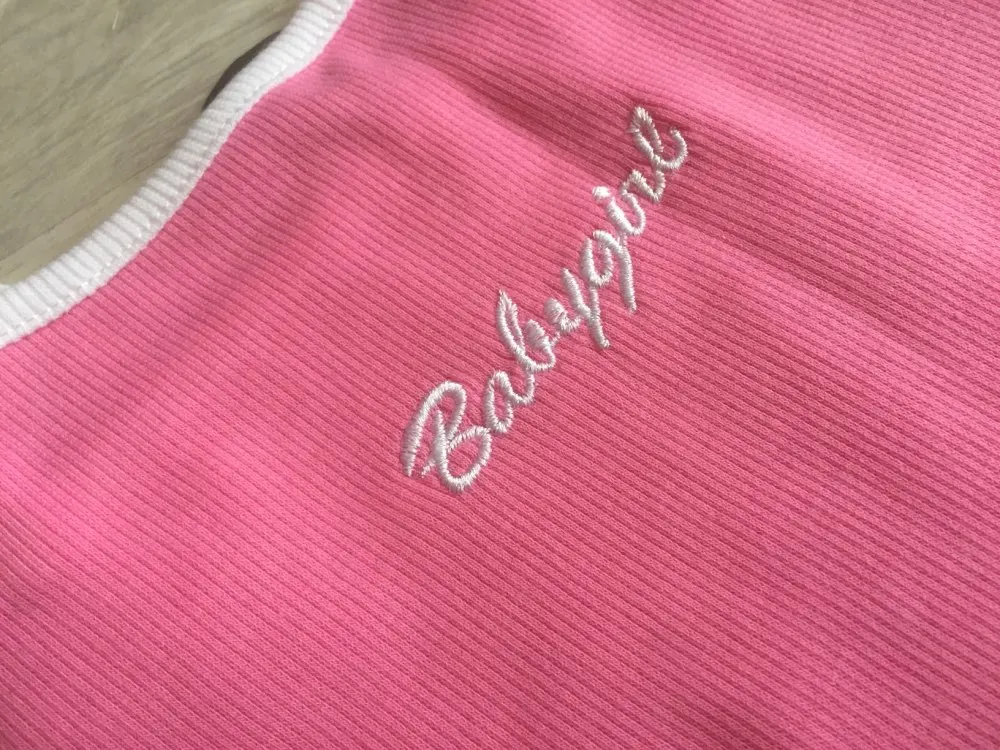 Baby Girl Letters Embroidery Spaghetti Straps Patchwork Crop Tops L0224