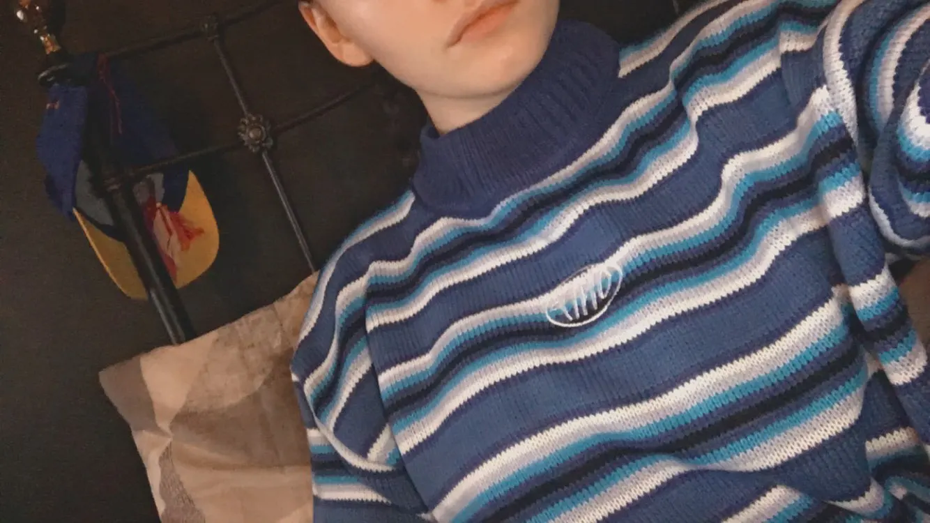 Same as in the photo but you have to keep in mind that it's a short sweater.