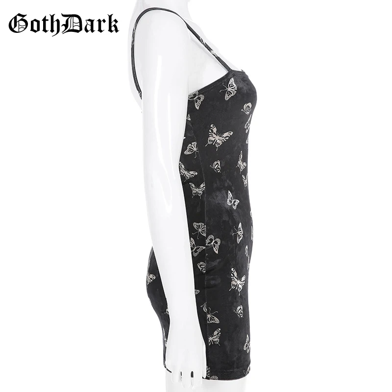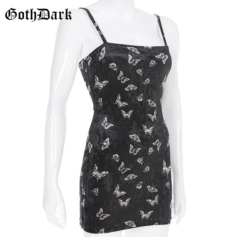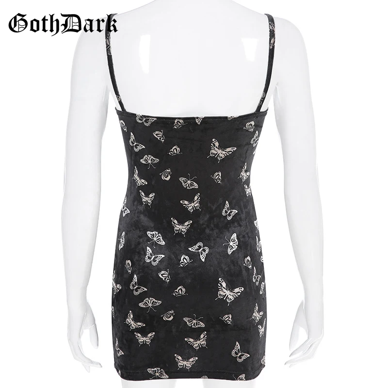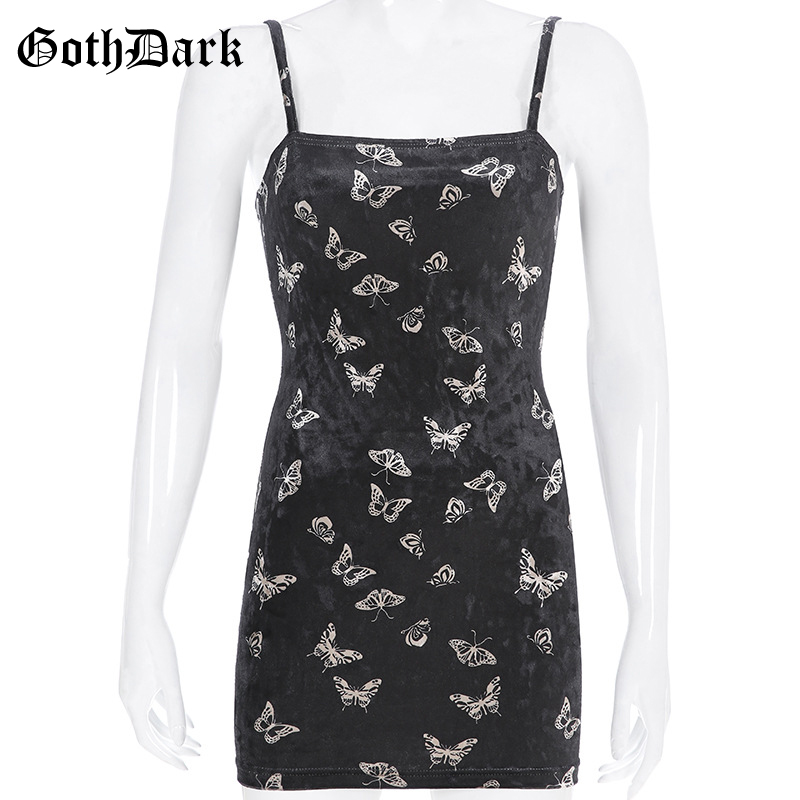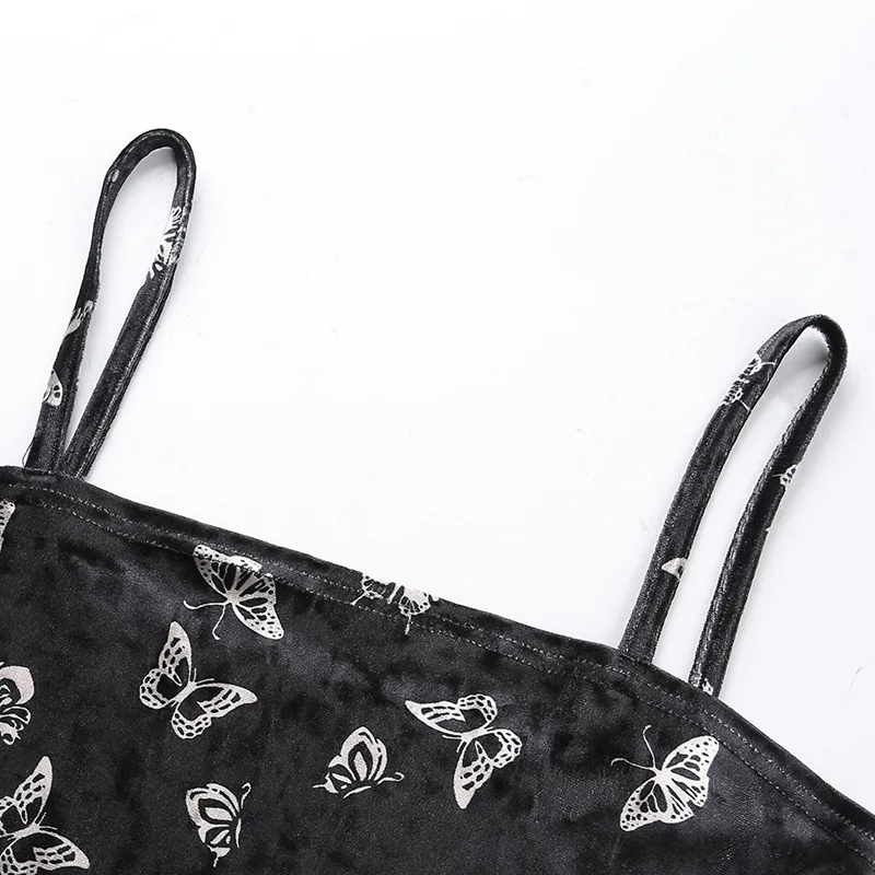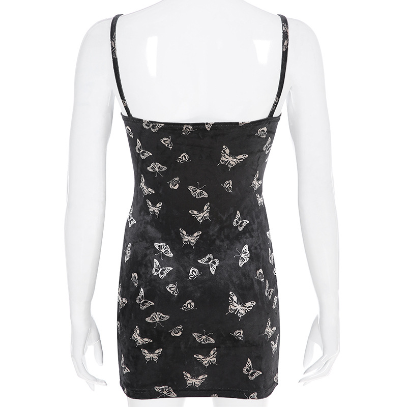 Black Butterfly Print Spaghetti Strap Backless Casual Dress OG0666