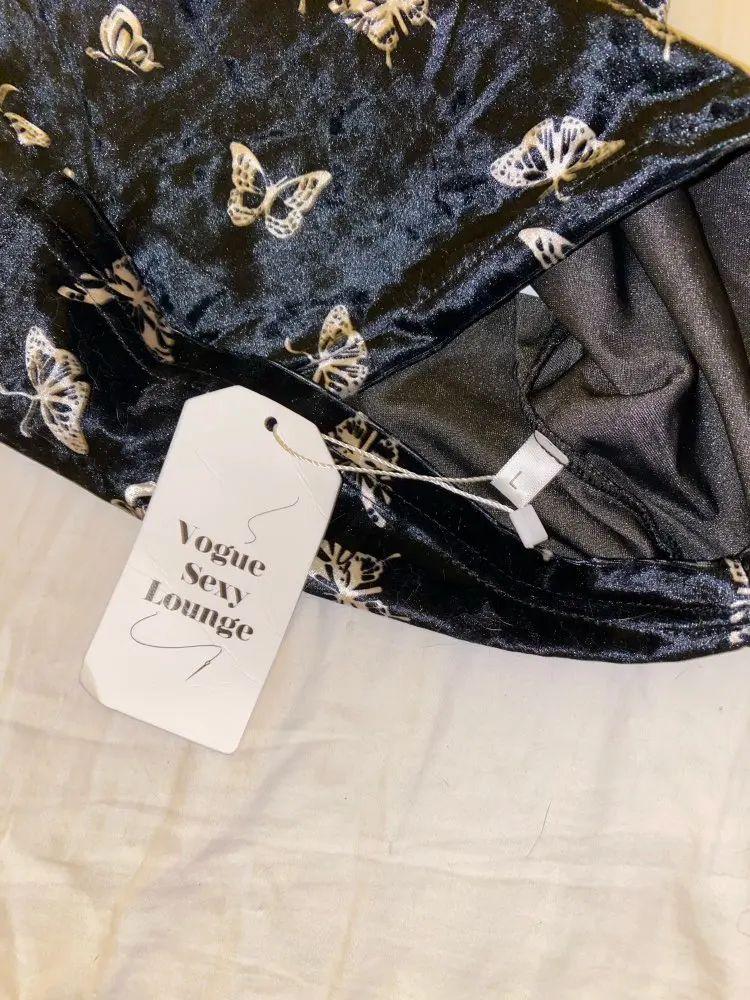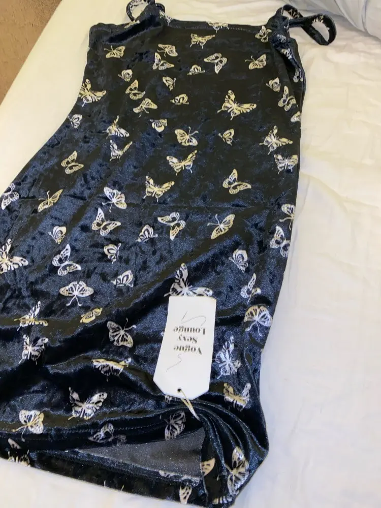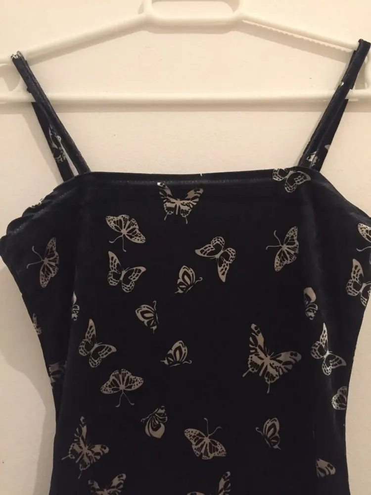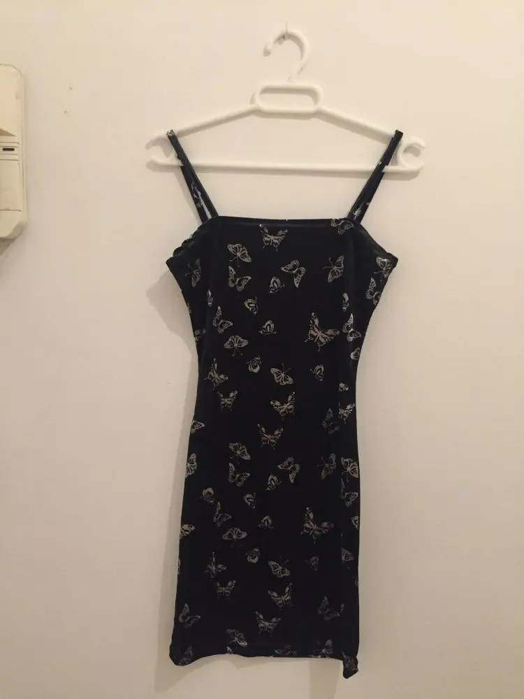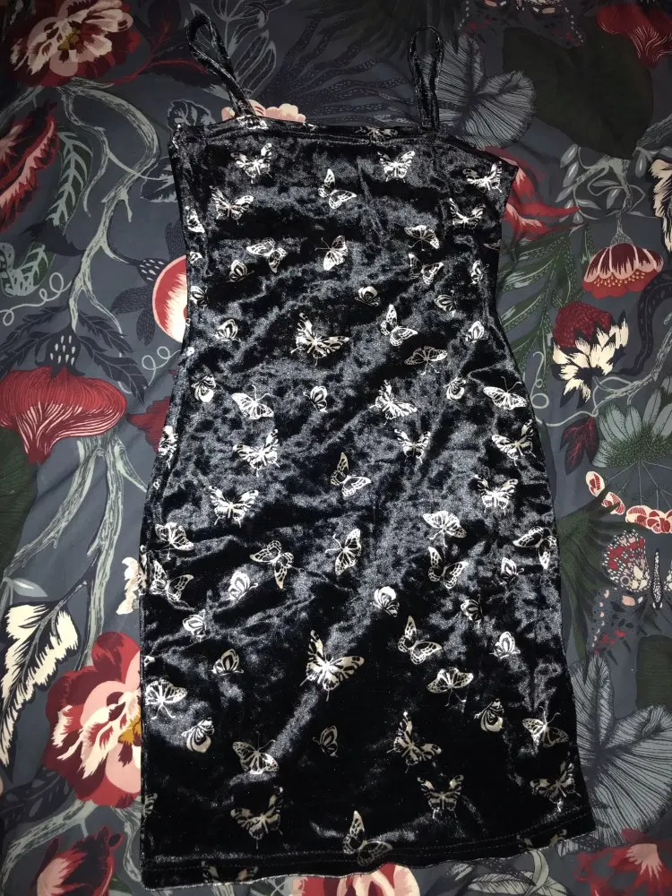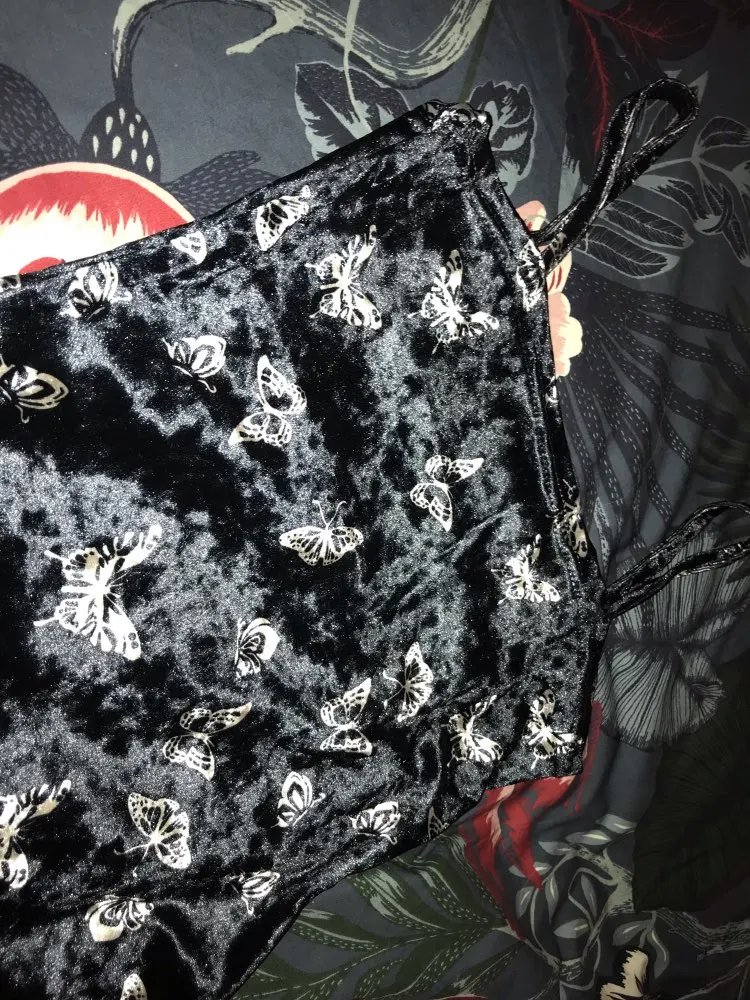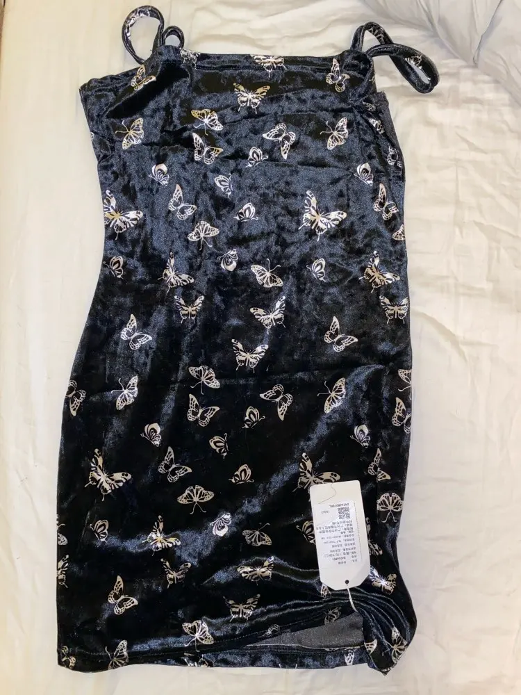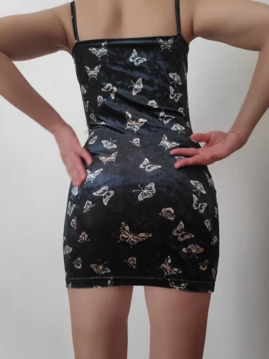 Black Butterfly Print Spaghetti Strap Backless Casual Dress OG0666