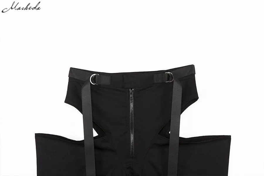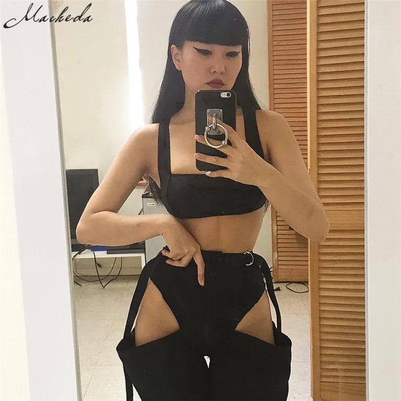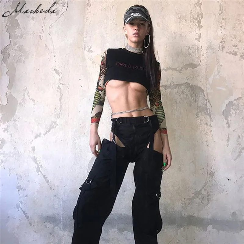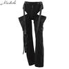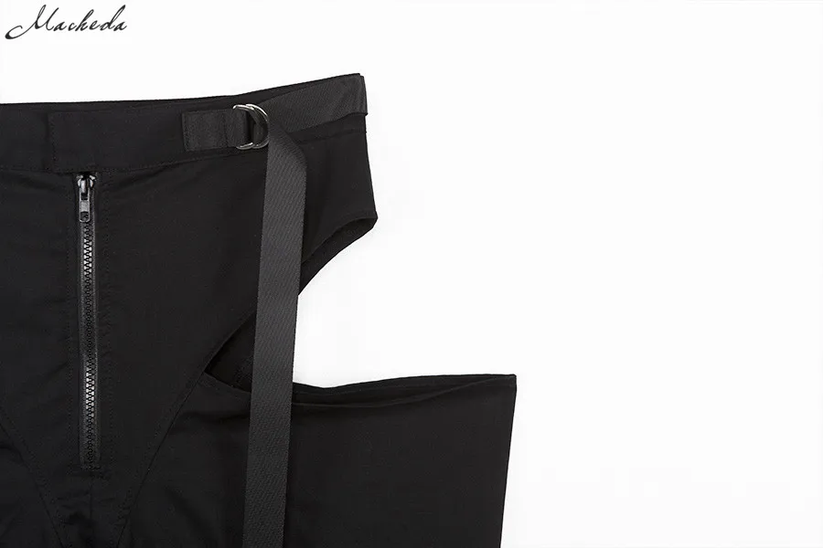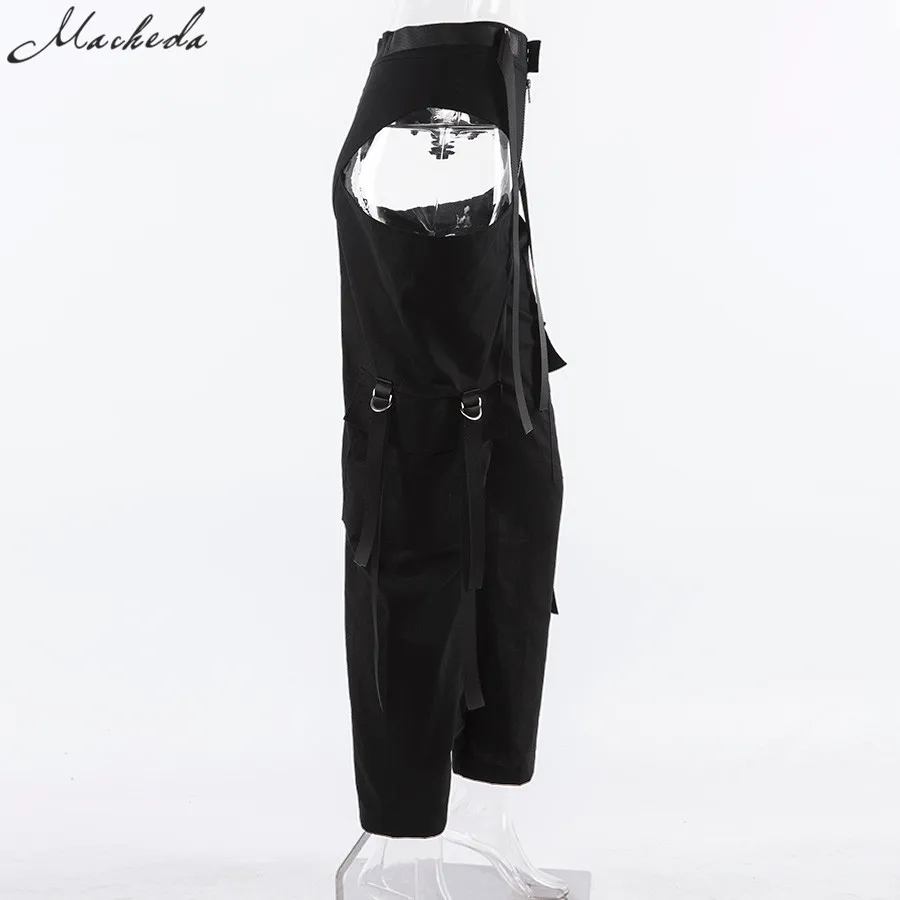 Black High Waist Hollow Up Zipper Trousers Loose Pockets Streetwear Casual Harem Pants L0035
