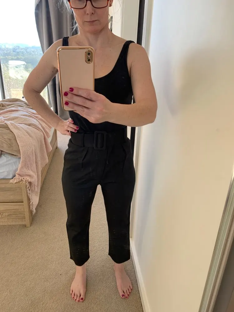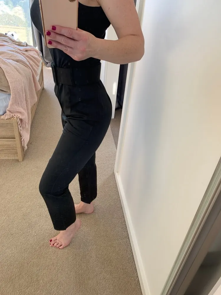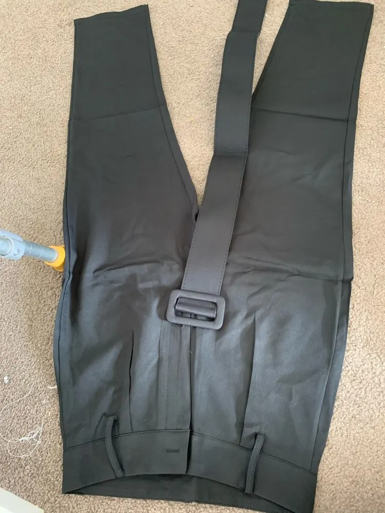 Very beautiful pants, loved the fabric. Just have some considerations for whoever buy: The belt is not covered with fabric pants it is made of faux leather with a thick fabric over. The pants the bottom big, cuz is for someone taller. I measure 1,56 m, so will need to decrease the bottom, otherwise was uptight. Unfortunately the pants have lining, but just use with a short inside. The only "defect that found the piece were finishes, this sewing out not appreciated the clothing.