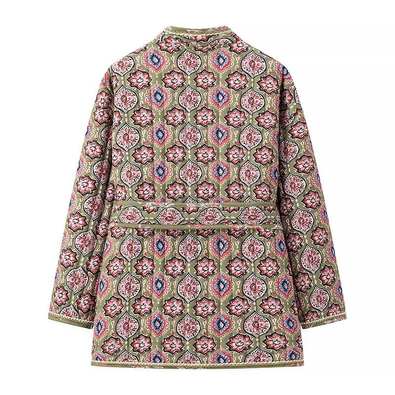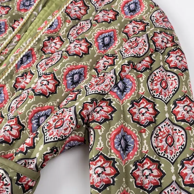 Boho Floral Quilted Jacket for Women Vintage Ethnic Print Cotton Padded Coat OUT1131