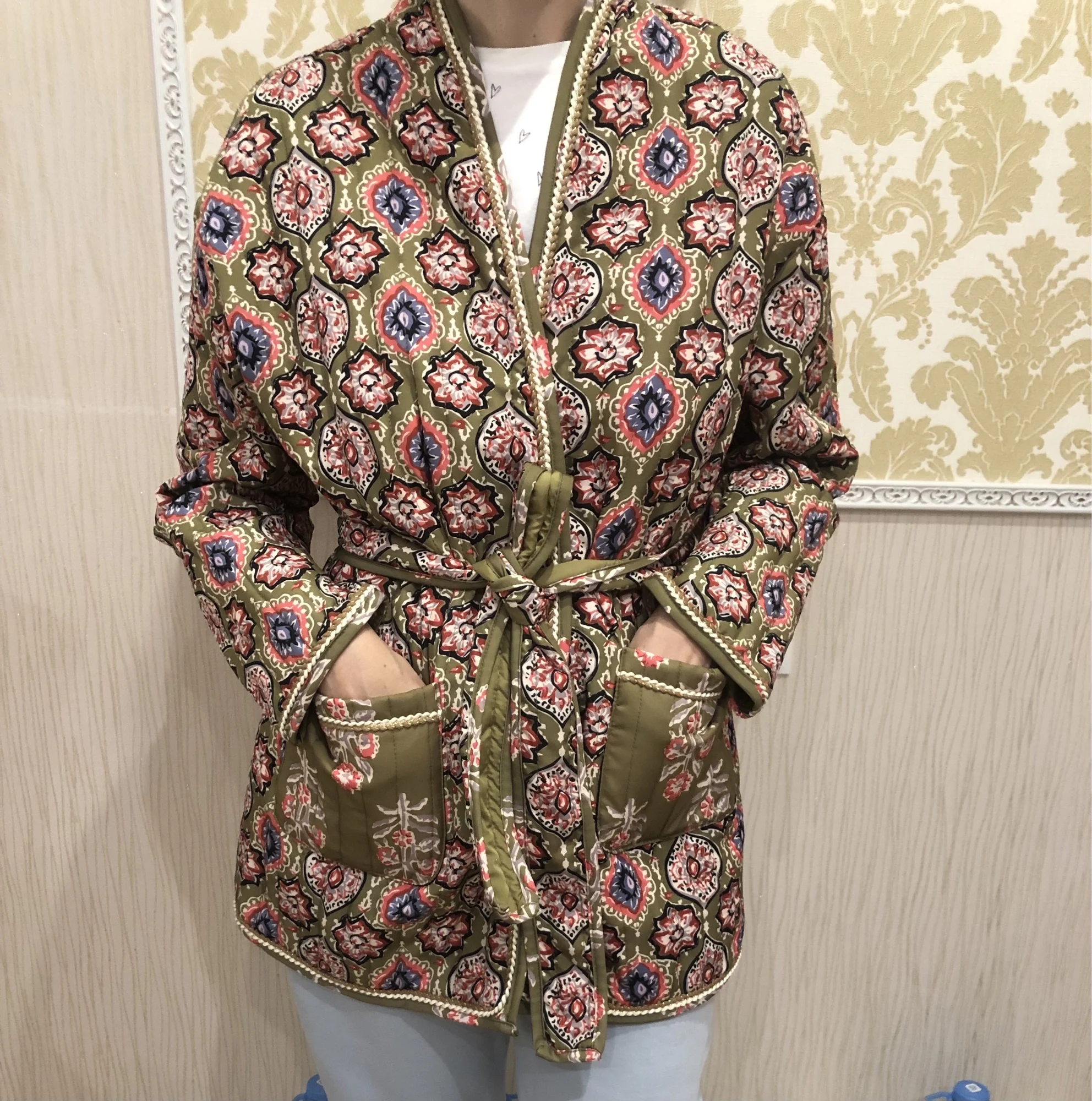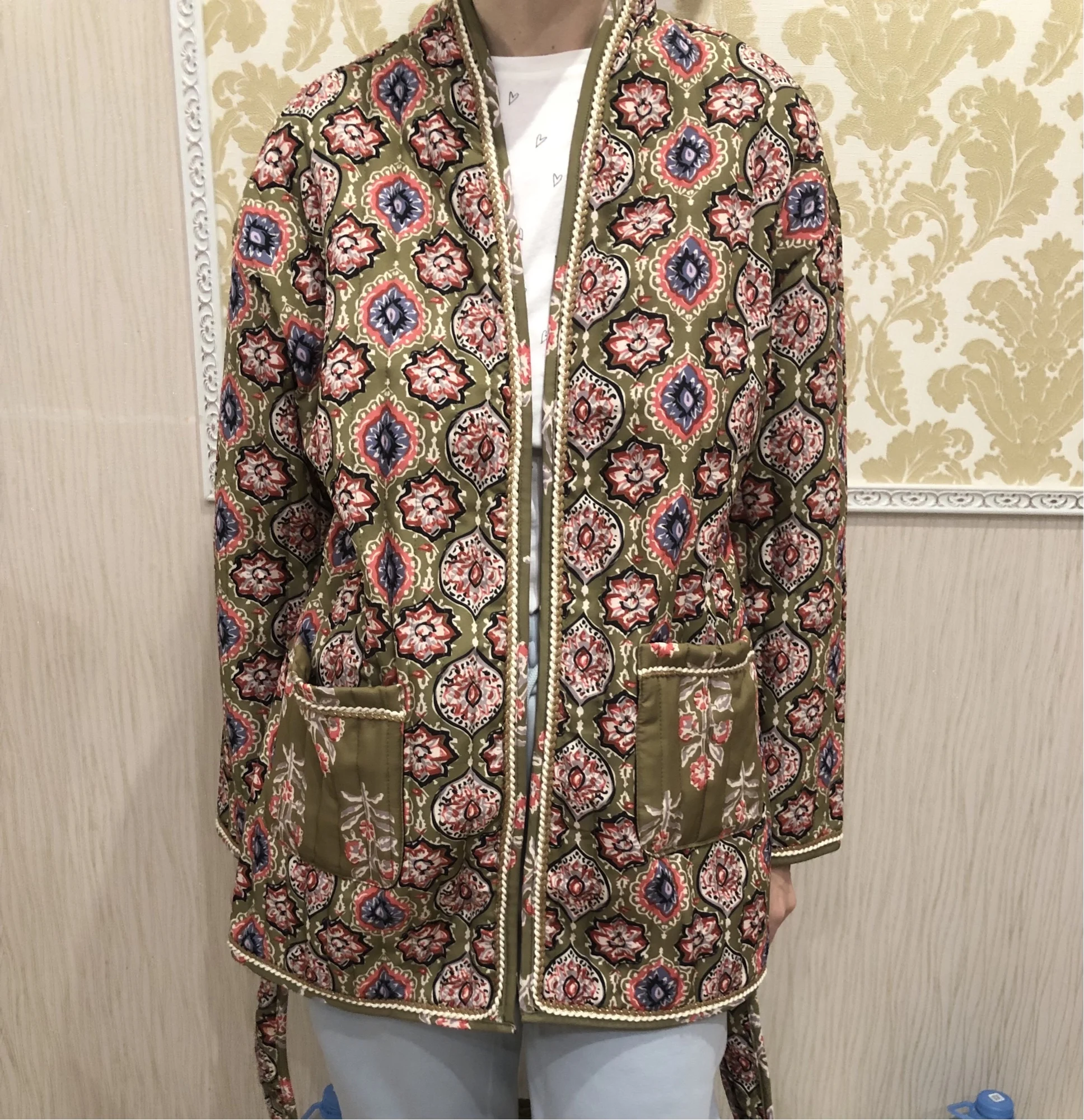 Boho Floral Quilted Jacket for Women Vintage Ethnic Print Cotton Padded Coat OUT1131