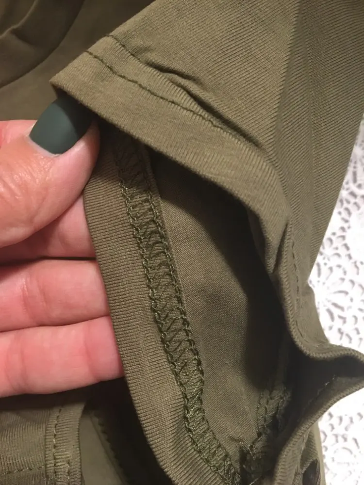 The fabric is pleasant, the seams are even, the buckle is not pricked. The length is normal. My height is 172 cm, I wear 46 sizes.