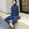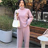 Casual Sweater Pants Knitted Set Turtleneck Pullovers And Elastic Waist Pants