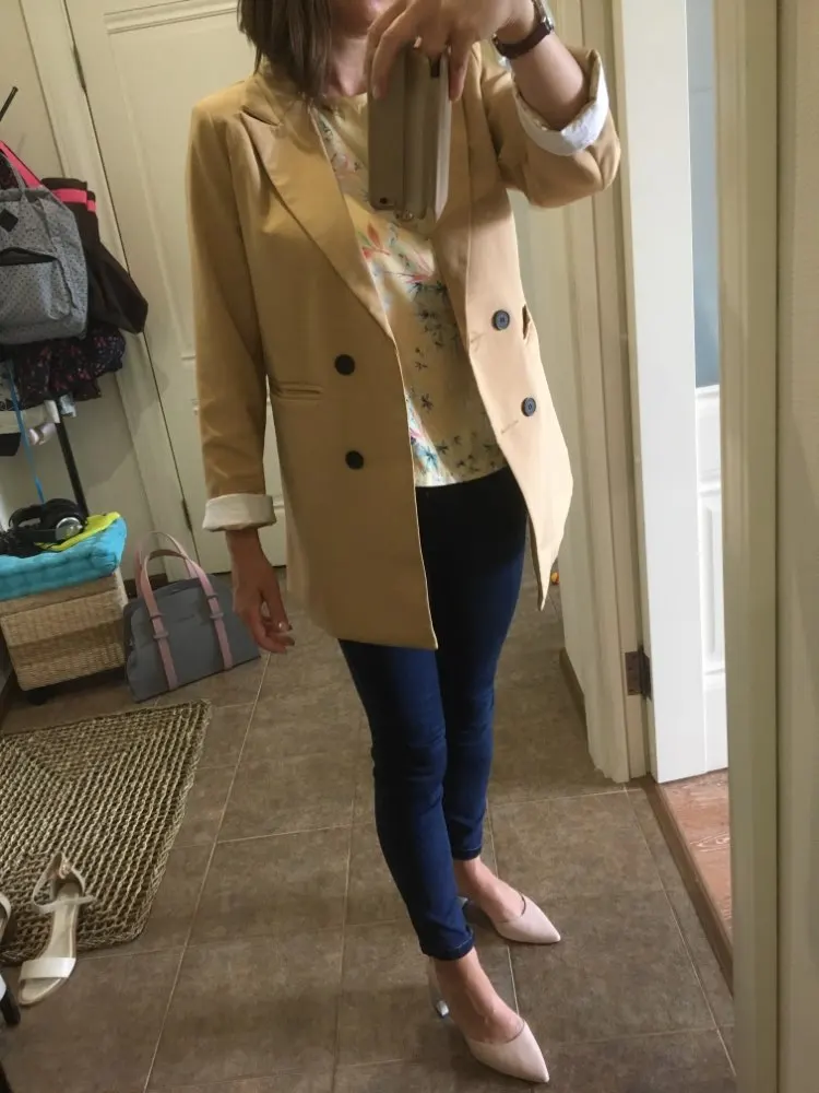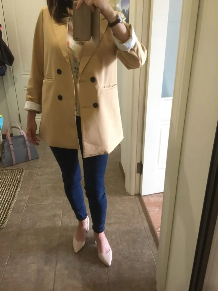 Received a parcel to Kaliningrad in 36 days. The jacket is cool. On my shoulders 38cm, og103. Ot84. Ob105 sat upstairs great. And the hips are small. But I don't like fastening jackets, so it looks good. In real, the color is slightly darker than in the photo. More camel than Haki. Of course I will wear. If the sizers were cut off bigger, I would have taken all the colors. The material of course is polyester but nice to the body, the lining is milk color. Shoulder pads are, so it keeps the shape on the shoulders well. Prvda slightly embarrassing buttons of black color... Let me see maybe a replacement. Although if worn under black pants and black top, they look harmonious.