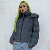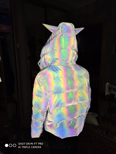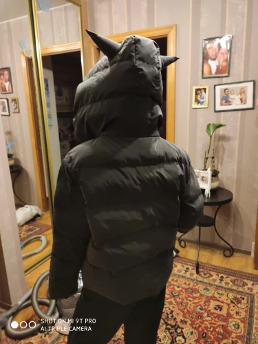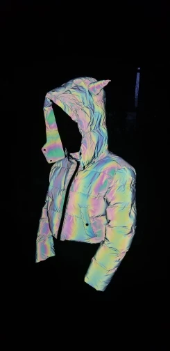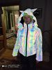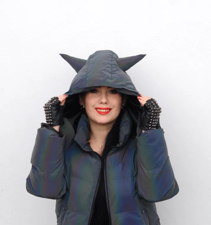 Devil Hooded Reflective Cotton Padded Women Crop Jacket Winter Coat Long Sleeve Zipper L0180