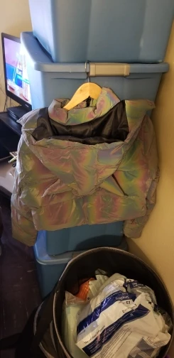i love this jacket alot looks just like the pic and fits perfect and the colors under a light looks amazing