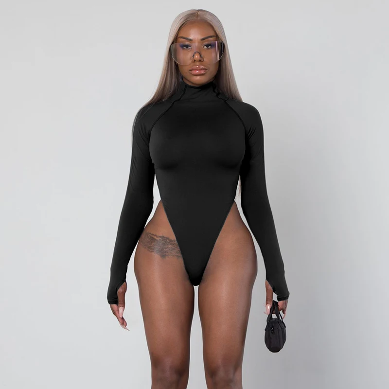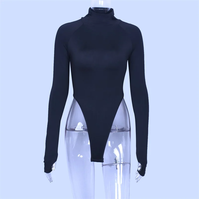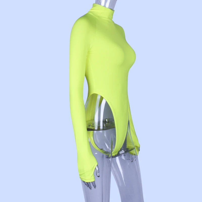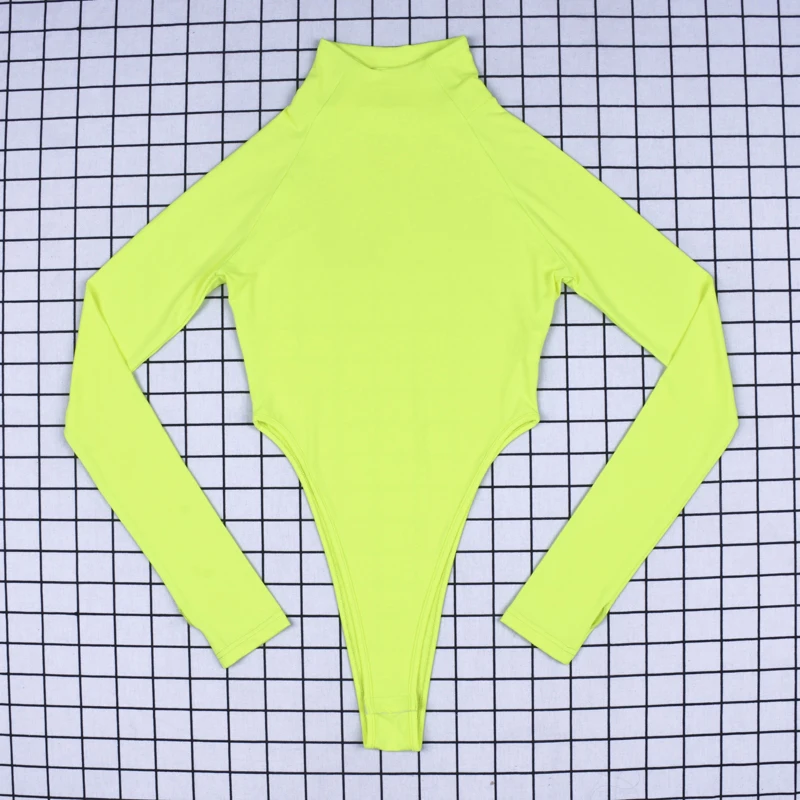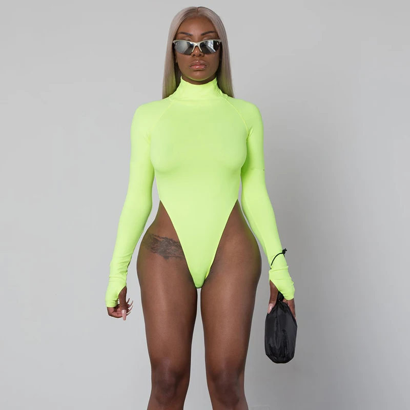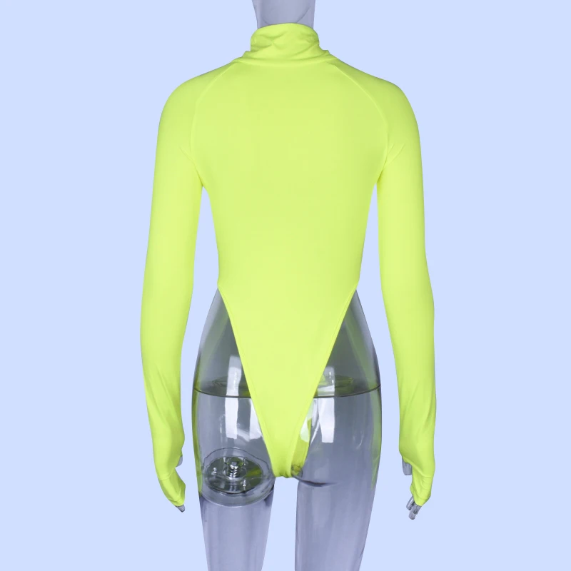 Christmas Bodysuit Long Sleeve High Neck Neon Color Bodycon L0232
