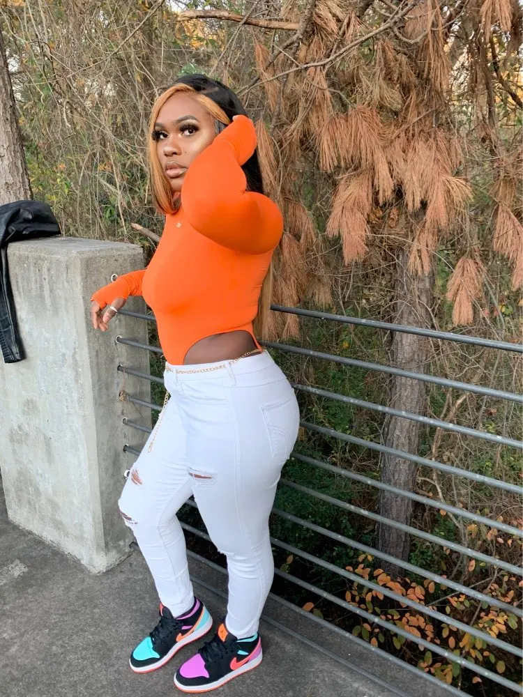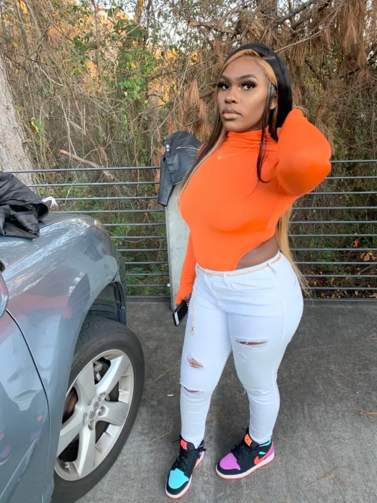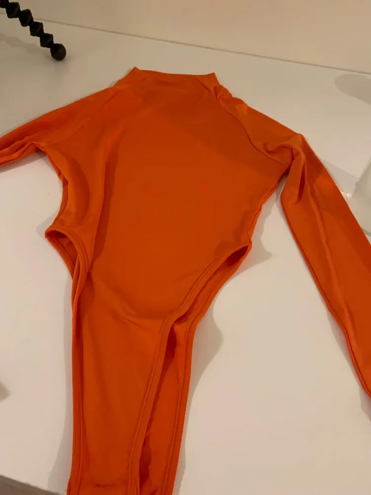 Christmas Bodysuit Long Sleeve High Neck Neon Color Bodycon L0232